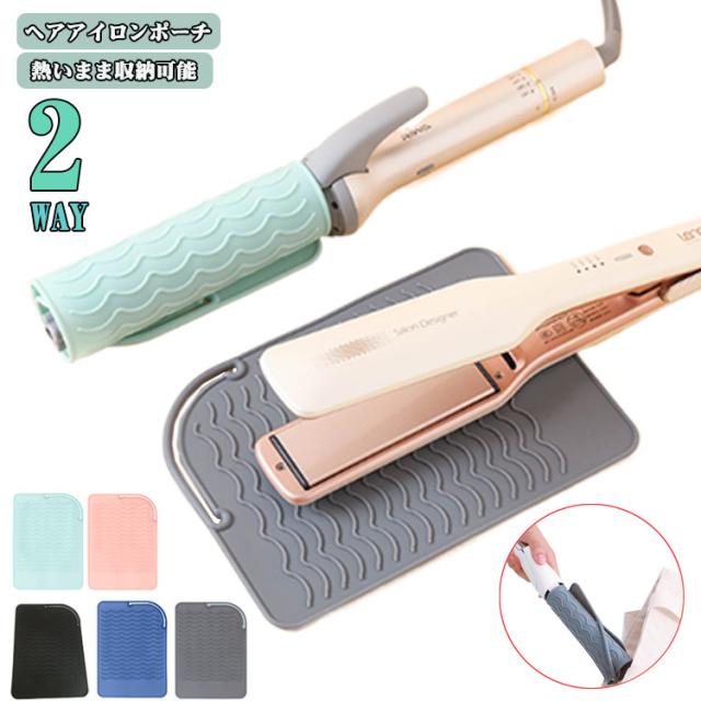 ヘアアイロンポーチ ヘアアイロン 収納 ポーチ 耐熱マット ヘアアイロン 熱いままOK 旅行 ヘアアイロン シリコン 2way仕様 ヘアアイロンホルダー ヘアアイロンケース ヘアアイロンマット ヘアアイロンカバー 持ち運び