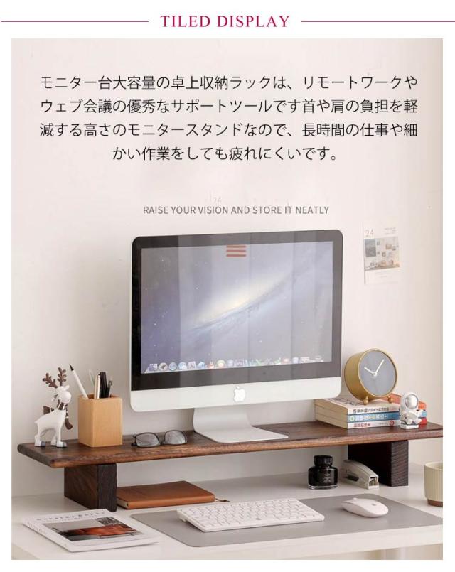 | モニター台は人間工学に基づいたデザインで、視線が自然に上がり、背筋が伸びるようになり、猫背を防ぐことができます。 姿勢を正しく保つことができれば、楽な作業、健康な生活ができます モニター台は様々な状況で非常に役に立ちます。 キーボードとマウスをモニターベースの下に収納することで、デスク上の利用空間が広がり、本棚やプリンター・ファクス機のスタンドとして使っても大変便利です。 好きなもの(画像や鉢植えなど)を飾って、自分だけの理想空間を作れます。 モニター台大容量の卓上収納ラックは、リモートワークやウェブ会議の優秀なサポートツールです首や肩の負担を軽減する高さのモニタースタンドなので、長時間の仕事や細かい作業をしても疲れにくいです。 目の疲労、背中と頸椎の疲労も軽減でき、作業効率も向上させます。 | |