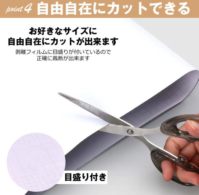 自由に裁断できてしっかり吸着。壁や家具に合わせて必要なサイズや好きな形に切り抜き、