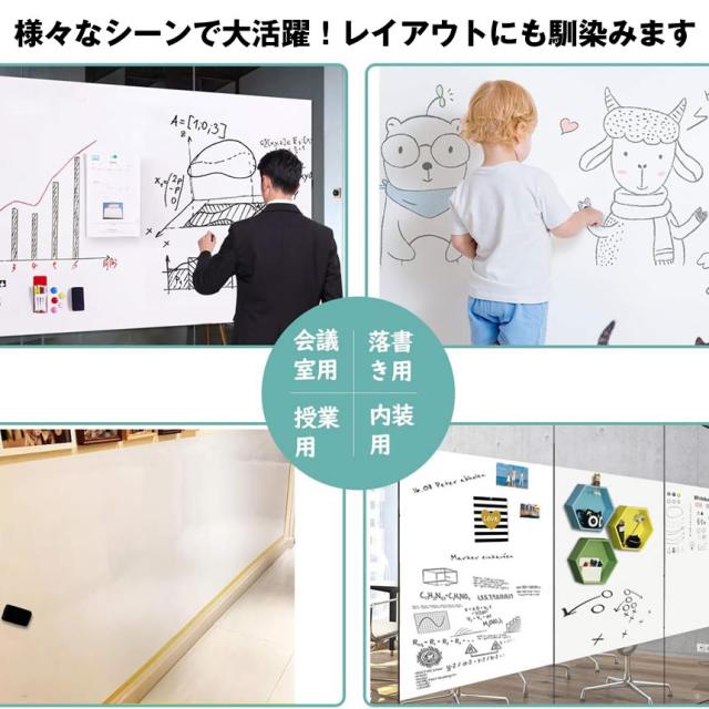 ホワイトボード シート マグネットシート お絵描きボード ボート 黒板シート 粘着シート強力 落書き 黒板 ブラックボードシート 壁掛け マグネット シール ロール 壁 壁に貼る 両面 テープ 付き オフィス キッチン 子供部屋 リビング こくばん 粘着