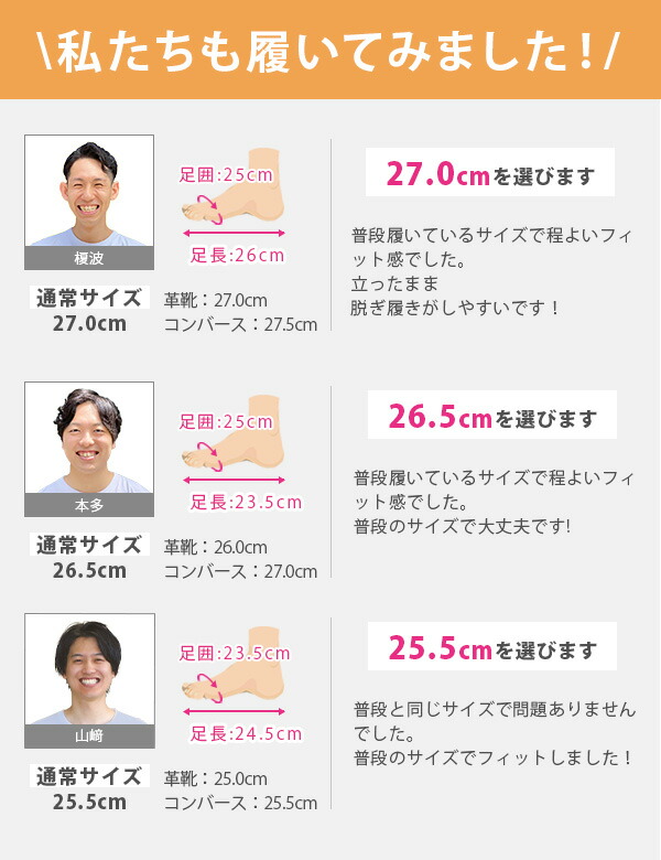 取り扱いサイズ:25.5cm 26cm 26.5cm 27cm 28cm
