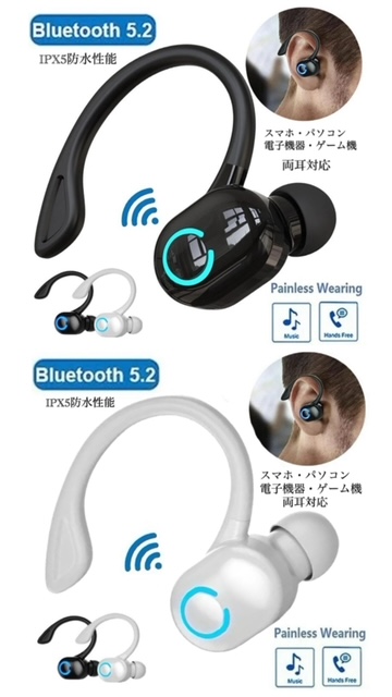 4 ワイヤレスイヤホン Bluetooth 5.2 イヤホン IPX5 イヤホンマイク フック ブルートゥース イヤフォン 日常 防水 片耳 USB 充電 高音質