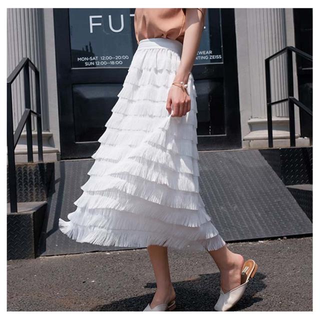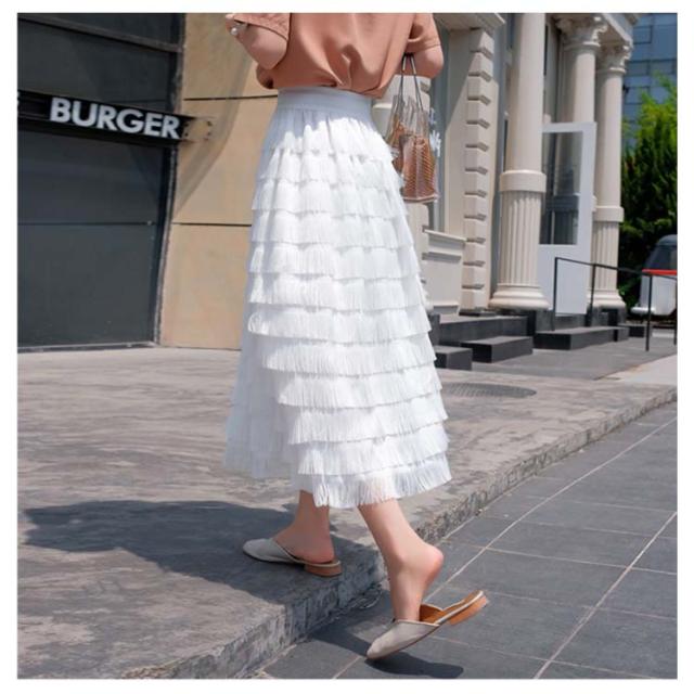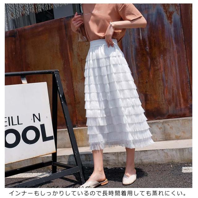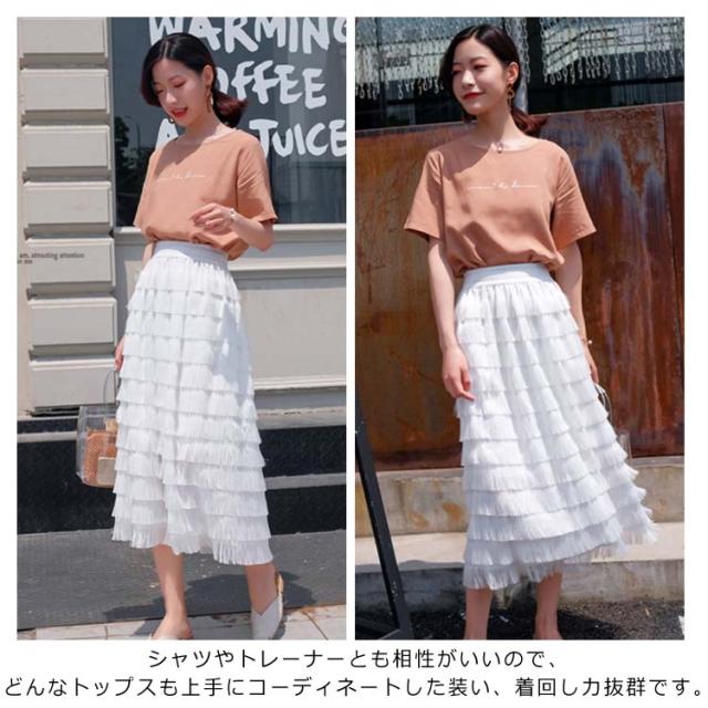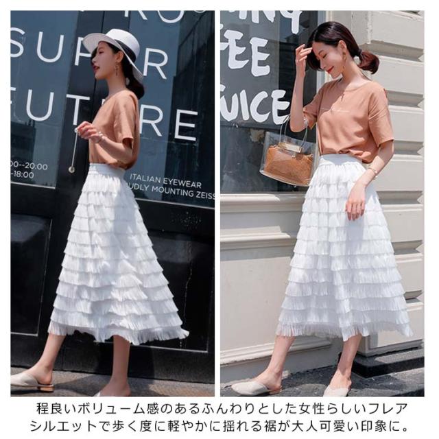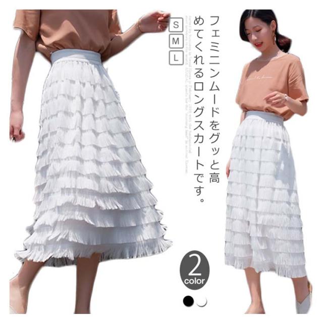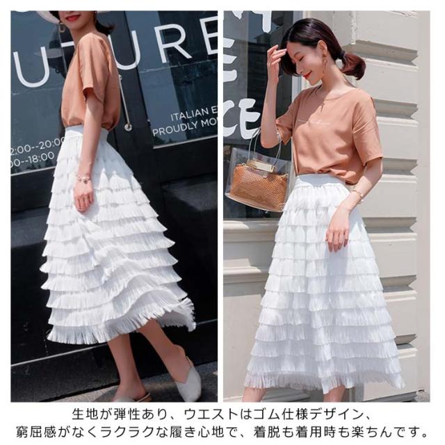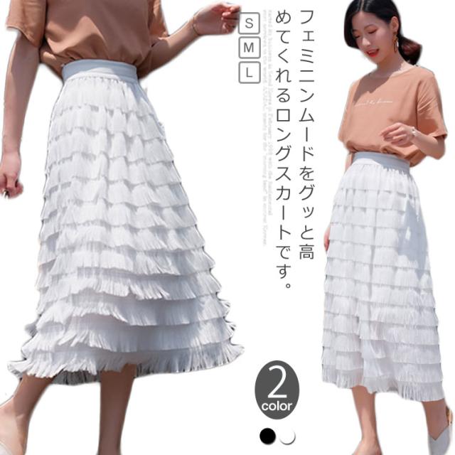 ロングスカート カステラスカート レディース ウエストゴム シフォンスカート チュールスカート フェミニン エレガント フリルスカート 無地 デート 新作