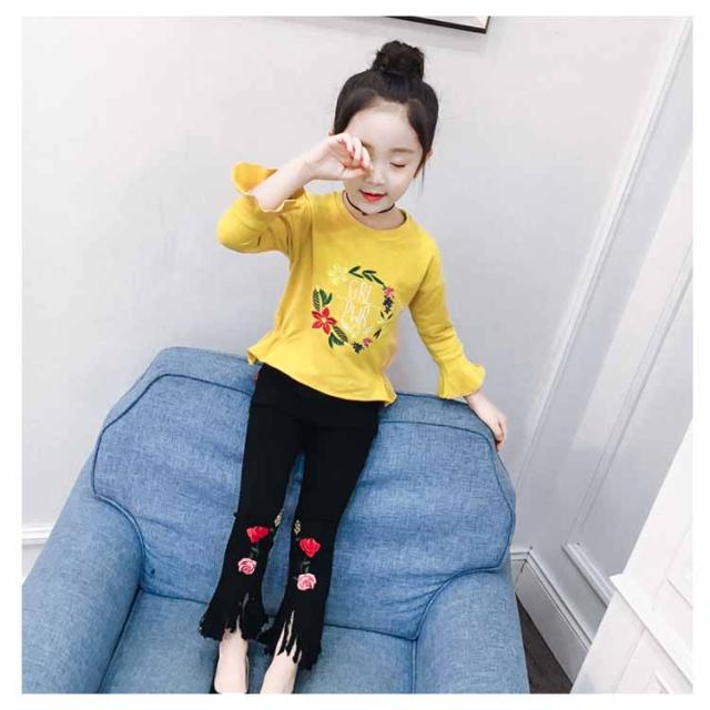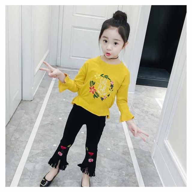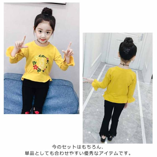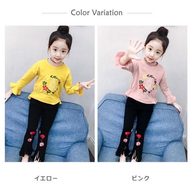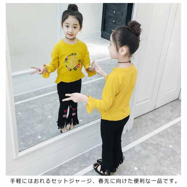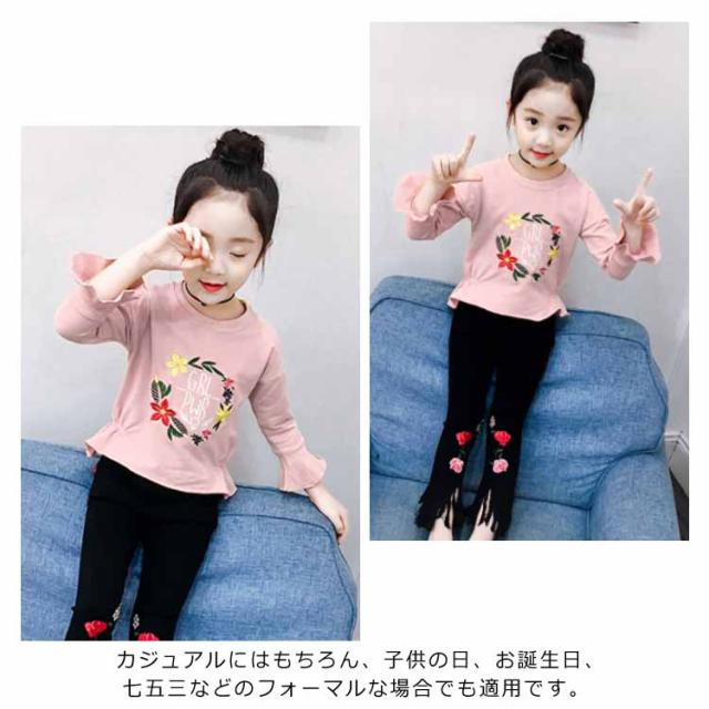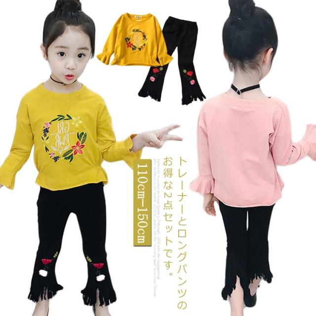 子供服 パーカー ロングパンツ 2点セット 花柄刺繍 ガールズ 上下セット 二点セット ジャージ プルオーバー 九分丈パンツ 着痩せ ゆったり 韓国ファッション 女の子 トップス デニム ロングパンツ 可愛い 新作 110 120 130 140 150