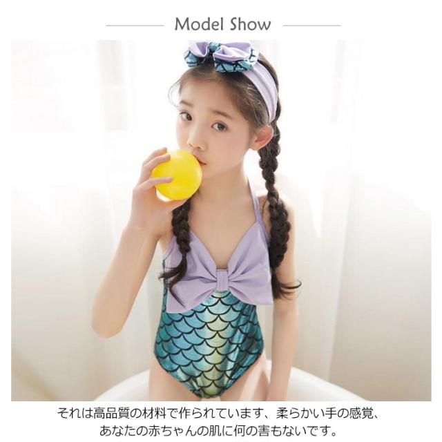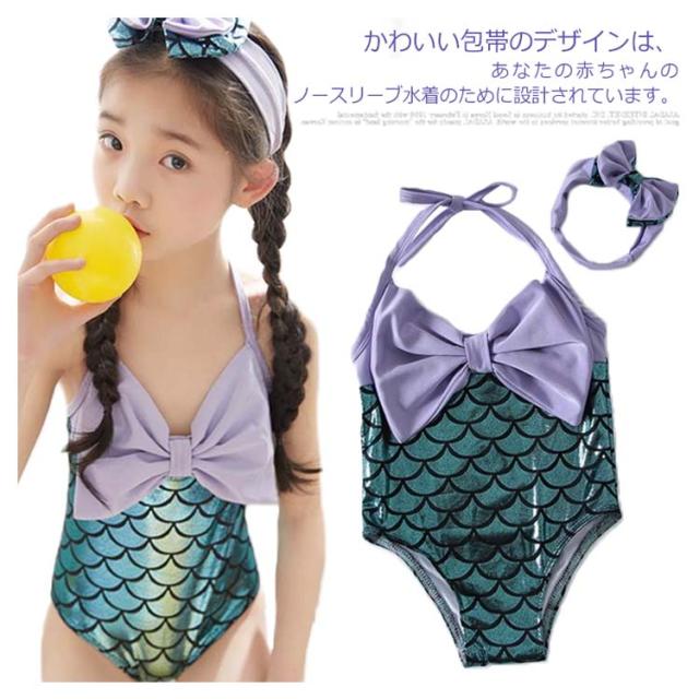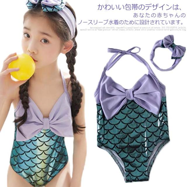 子供 水着 オールインワン水着 2点セット ヘッドバンド付き 女の子 ベビー水着 ビキニ スイムウェア 夏 リボン付き 温泉 可愛い 新作