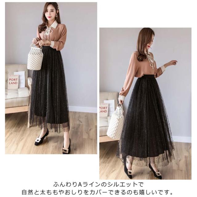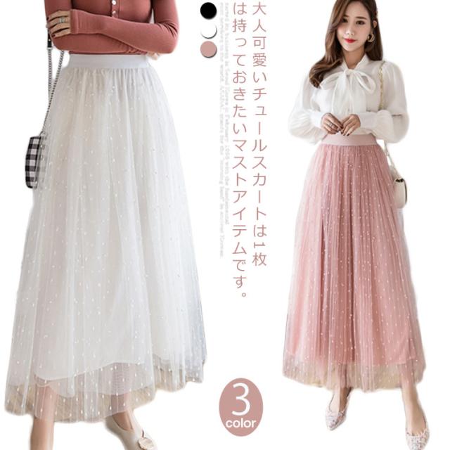 チュールスカート ロングスカート レディース チュール レース スカート マキシ ロング 長め ウエストゴム 春秋フレア パニエ 上品 オシャレ お洒落 新作