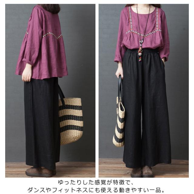 ワイドパンツ ロングパンツ ガウチョパンツ リネンパンツ レディース 綿麻 ゆったり リネン アンクルパンツ 夏 カジュアルアンツ 森ガール系 新作