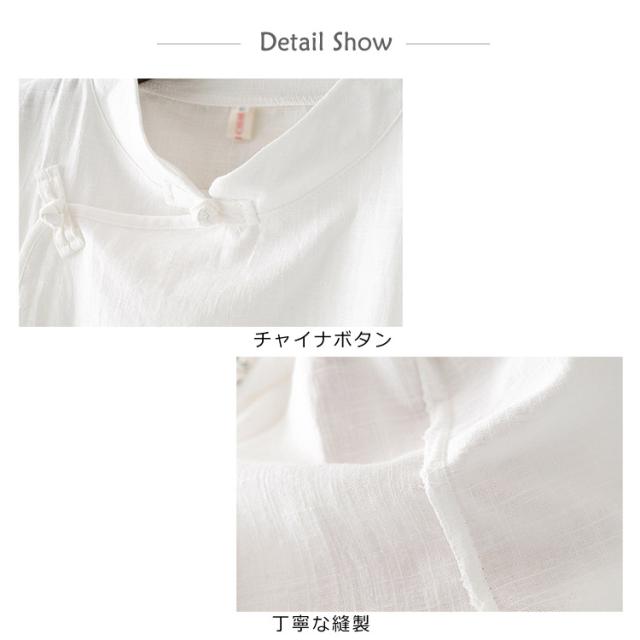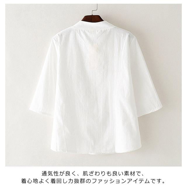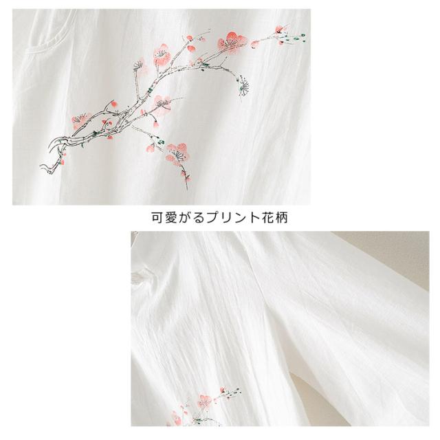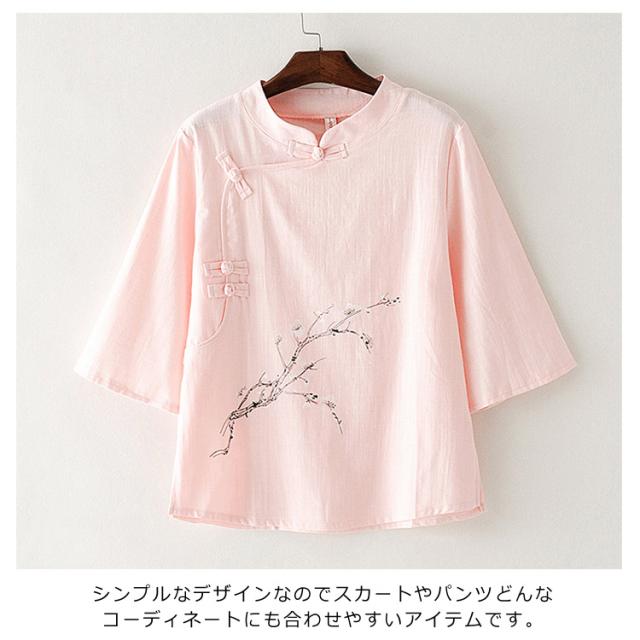 Tシャツ 七分袖 リネンtシャツ チャイナボタン レディース 花柄プリント トップス シャツ 中国風 綿麻 ブラウス 夏 無地 ゆったり エレガント きれいめ 通勤 新作
