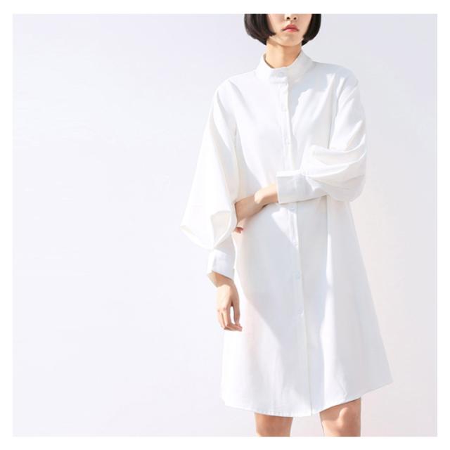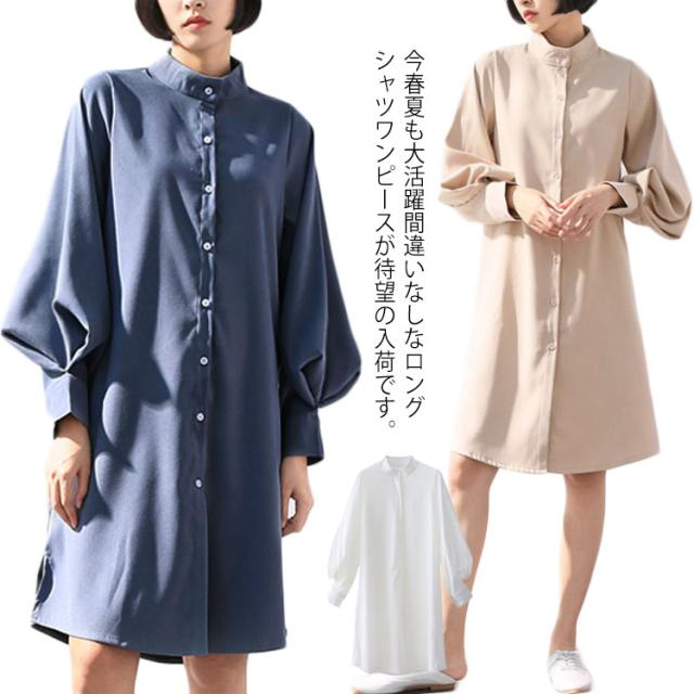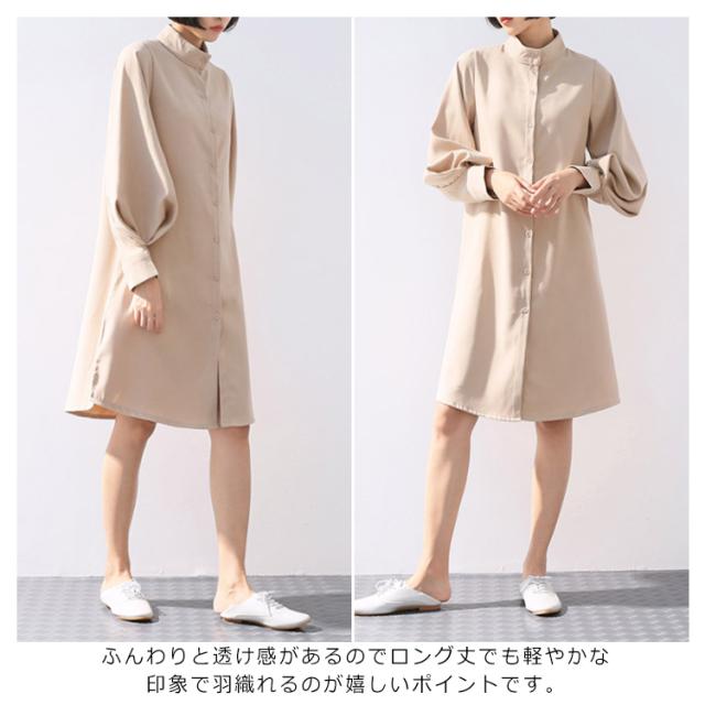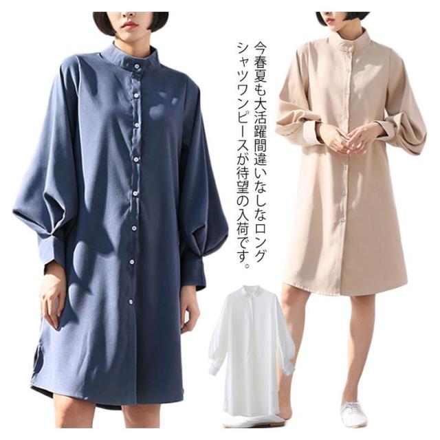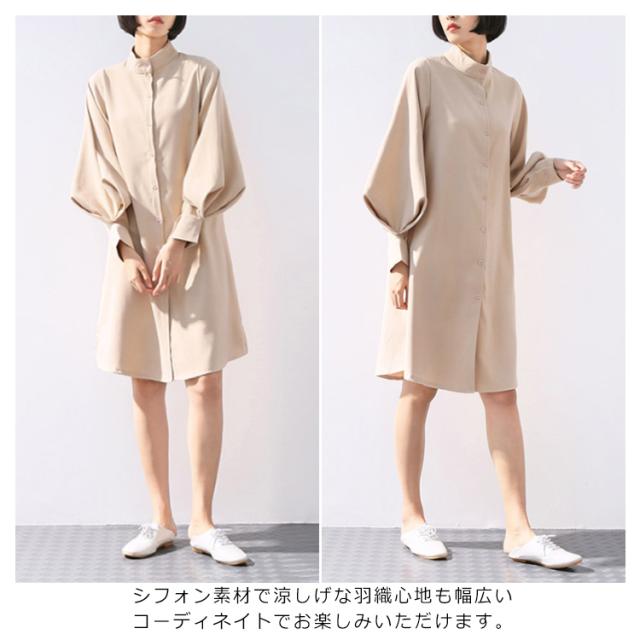 シフォンシャツ シャツワンピース ドルマンスリーブ 立ち襟 レディース エアリー 透け感 ロングシャツワンピース ふんわり 無地 着痩せ 上品 おしゃれ 通勤 OL 新作