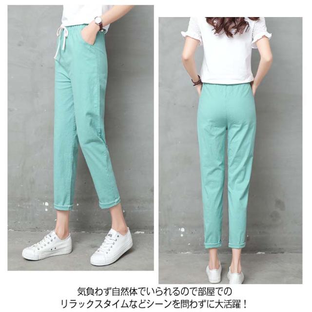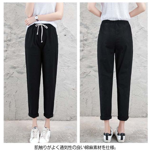 9分丈 綿麻パンツ リネンパンツ レディース 綿麻 サルエルパンツ テーパードパンツ アンクルパンツ ロングパンツ リラックスパンツ 綿麻 パンツ イージーパンツ ルームウェア ボトムス送料無料