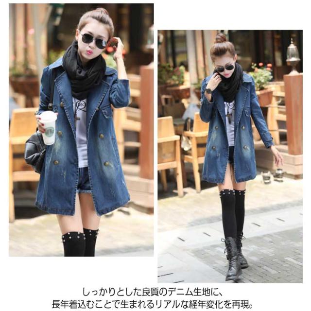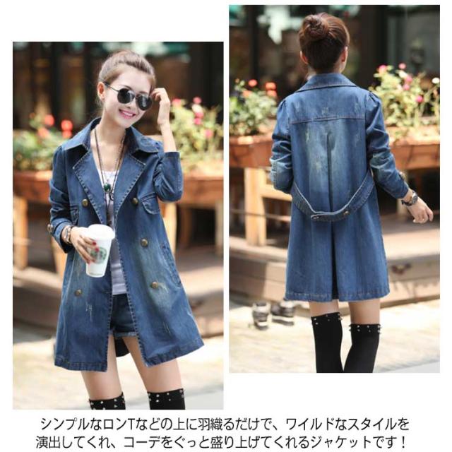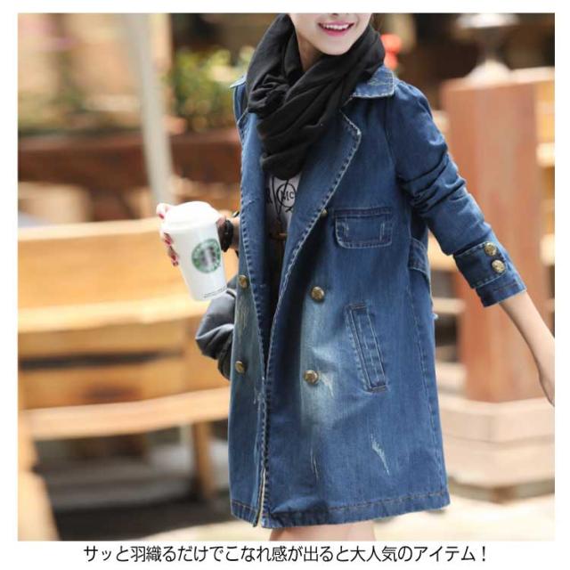 デニムコート レディース デニム トレンチコート スプリングコート Gジャン デニム ジャケット ロングコート チェスターコート カジュアル 秋 春 大人 上品送料無料