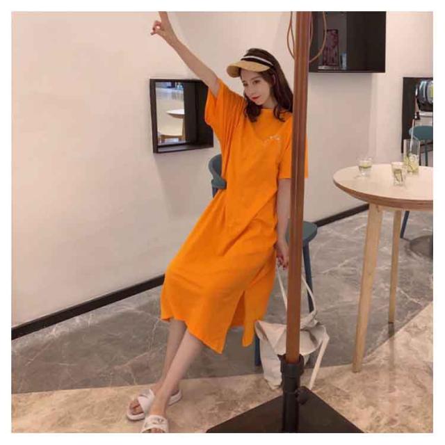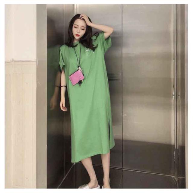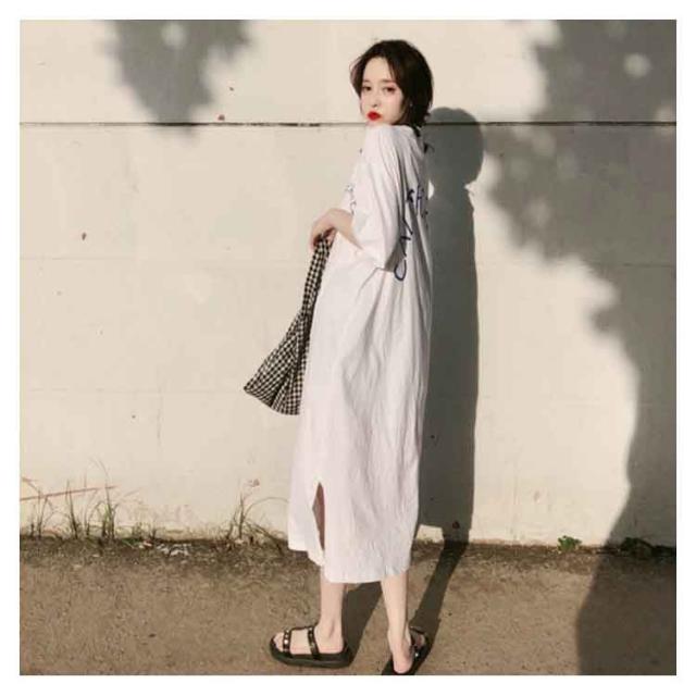 ロング丈Tシャツ 半袖 Tシャツ レディース Tシャツ ワンピース ロング丈 半袖 ワンピース 韓国ファッション ロングワンピース 可愛い送料無料