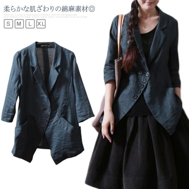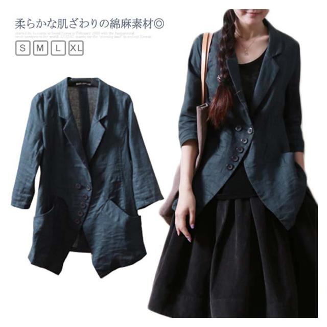 スーツ 単品 綿麻 テーラードジャケット レディース 7分袖 ジャケット リネン テーラードジャケット ショート丈 サマージャケット 薄手 ジャケット カジュアルジャケット オフィス 通勤 通学 事務所送料無料