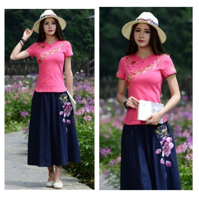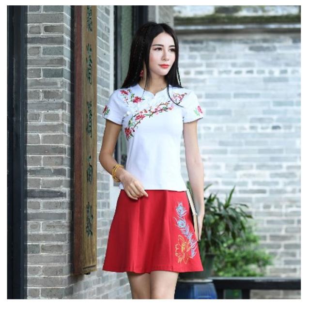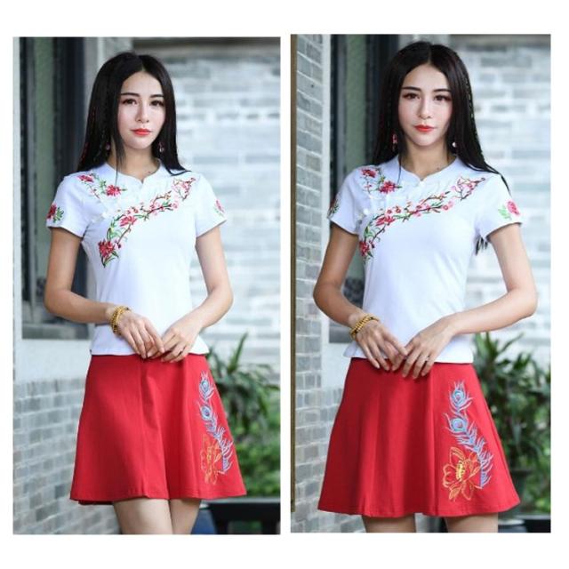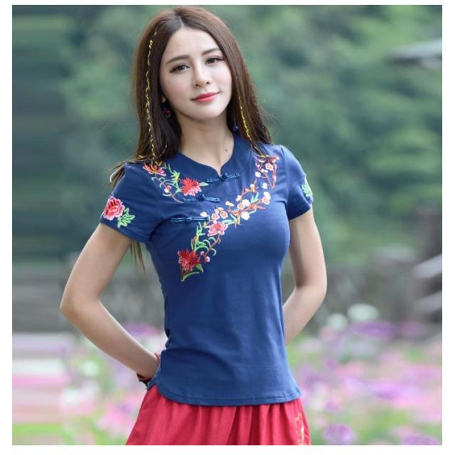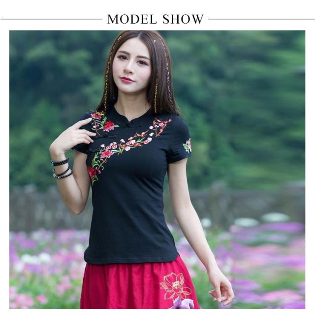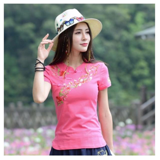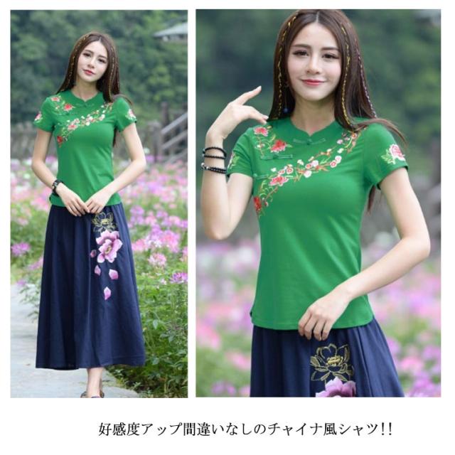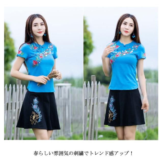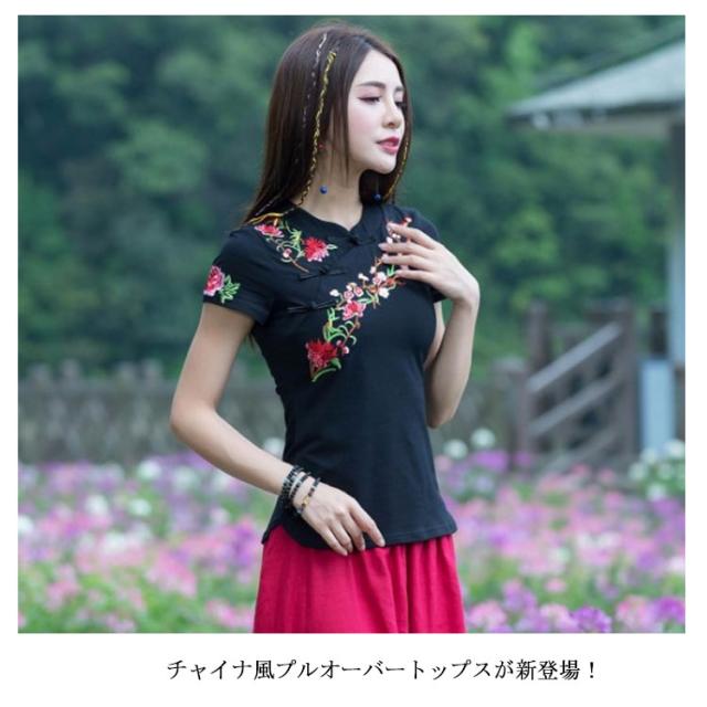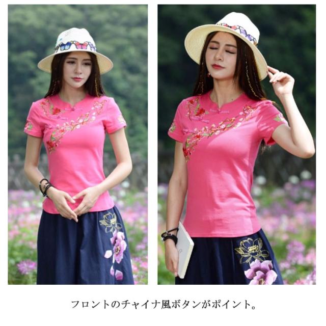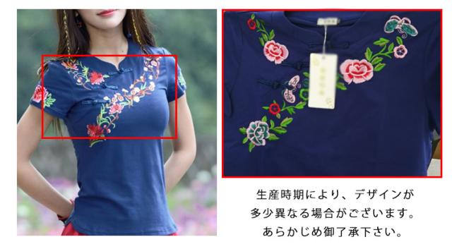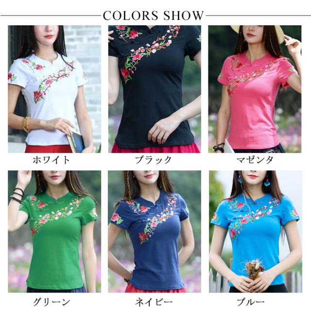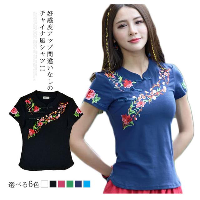 チャイナ風 トップス シャツ 半袖 シャツ レディース 刺繍 シャツ トップス プルオーバー Tシャツ ブラウス ナチュラル送料無料