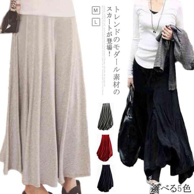 スカート フレアロングスカート モダール素材 フレアスカート Aライン スカート レディース モダール ロングスカート マキシスカート スカート マキシ丈送料無料