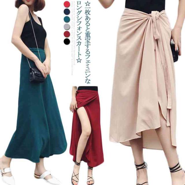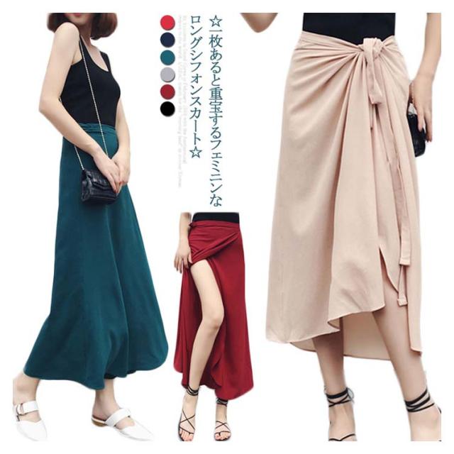 巻きスカート マキシスカート シフォン スカート レディース シフォンスカート ミモレ丈 シフォン フレアスカート ロング丈 ロングスカート ハイウェスト スカート 春 夏送料無料