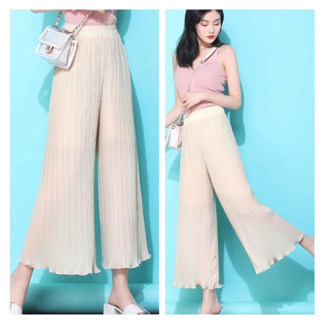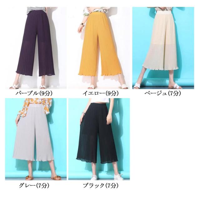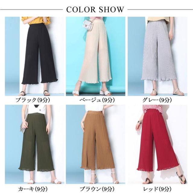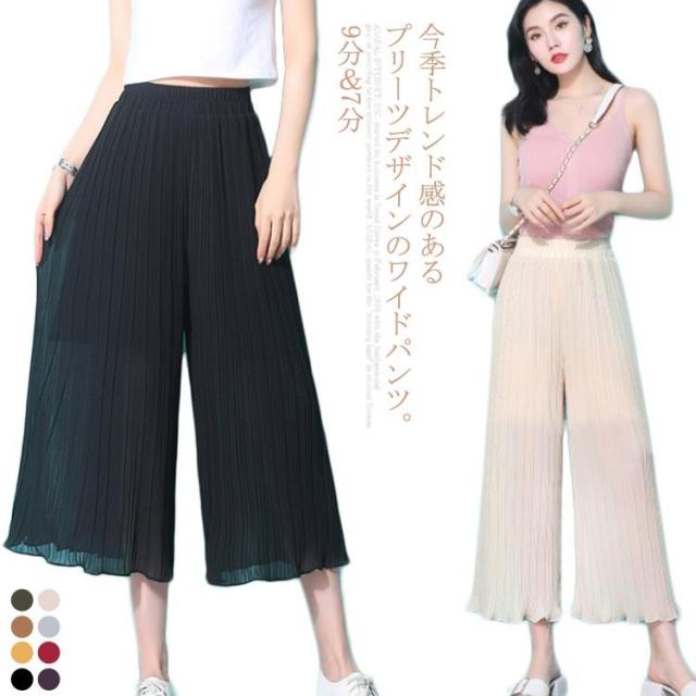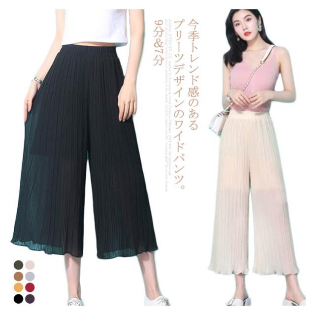 ガウチョパンツ スカーチョ レディース シフォン パンツ シフォン ワイドパンツ プリーツ パンツ ロングパンツ ストレート ワイドパンツ ボトムス パンツ送料無料