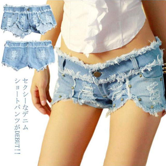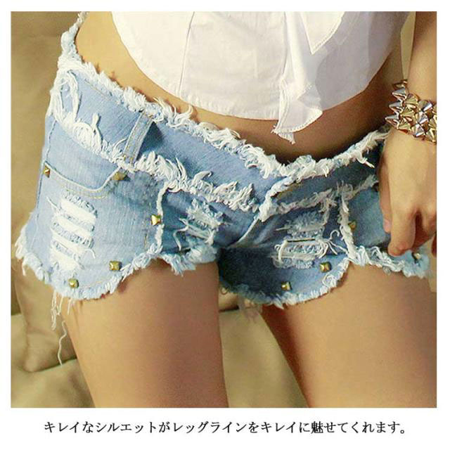 リベット付き ジーンズ レディース セクシー デニム ショートパンツ ダメージ ショーパン デニムパンツ ダメージ デニム ショートパンツ デニム ショーパン 切りっぱなし送料無料
