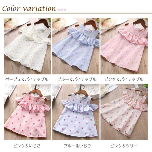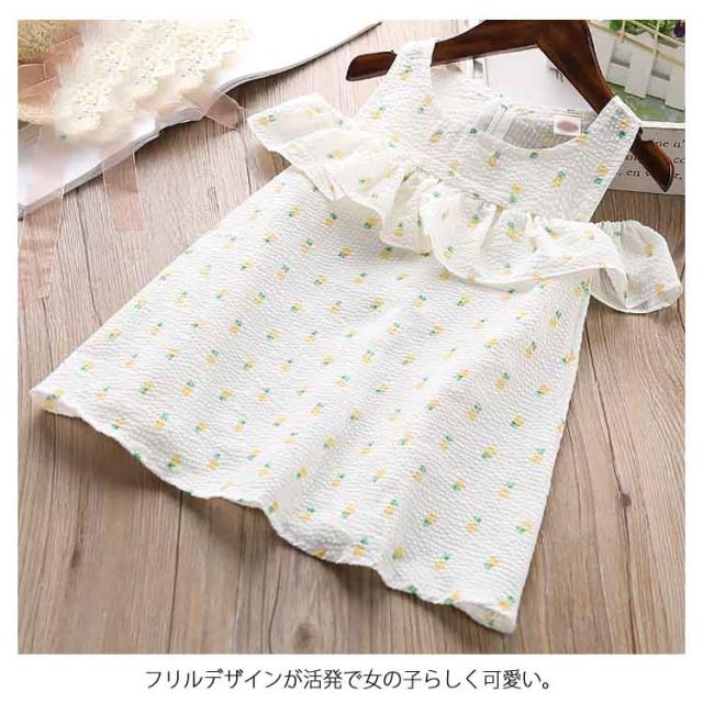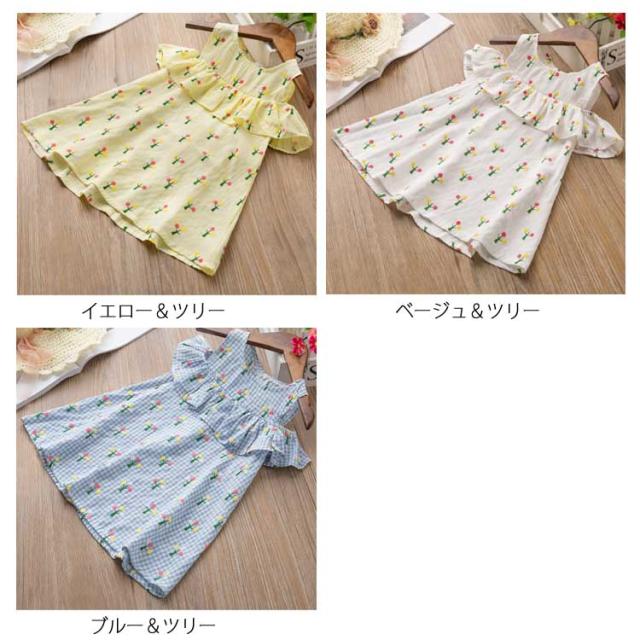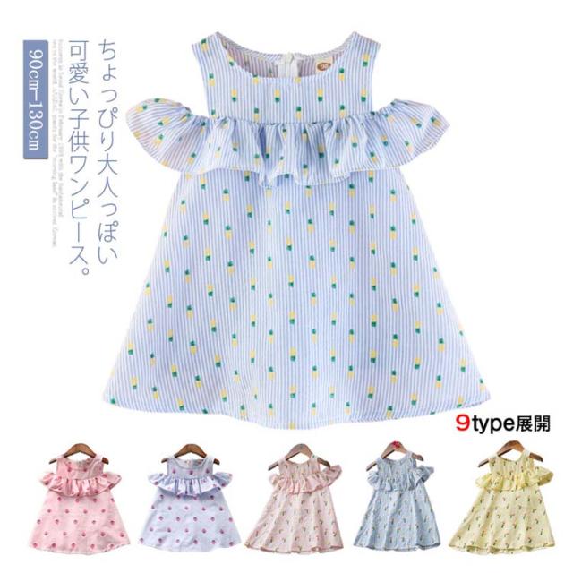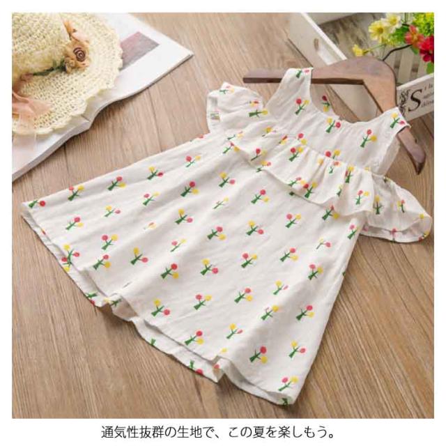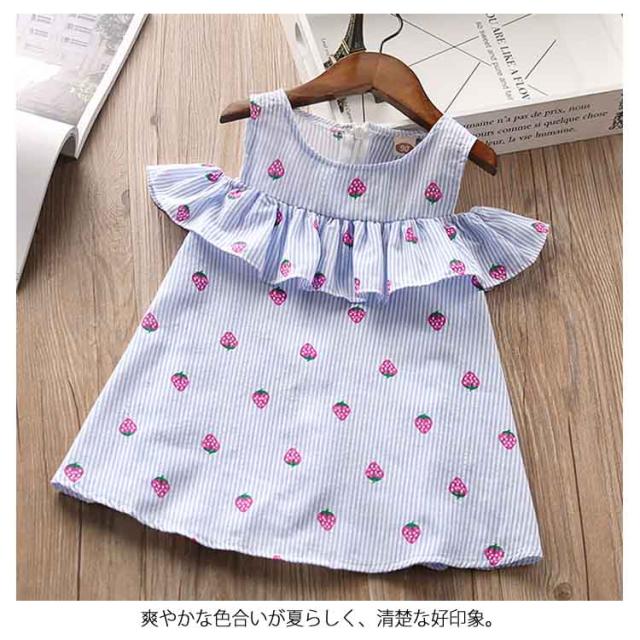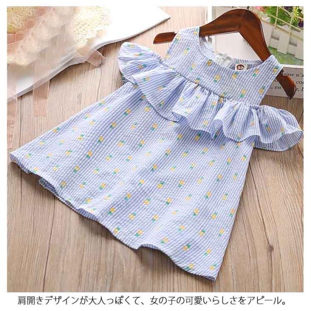 送料無料 ワンピース 子供服 オフショルダーワンピース フリル キッズ 子供 フレア ジュニア かわいい 通園 通学 子供用 柄物 夏 肩開き 大人っぽい 袖なし ワンピース