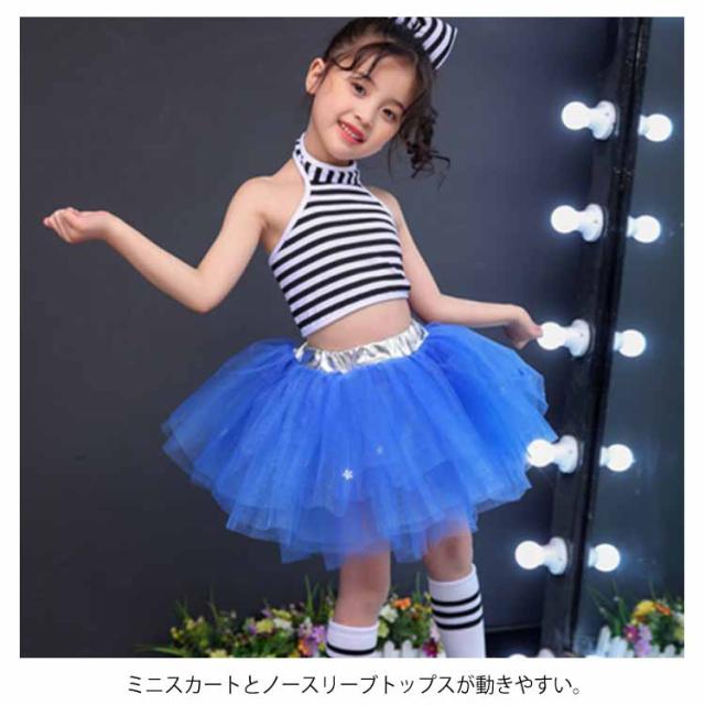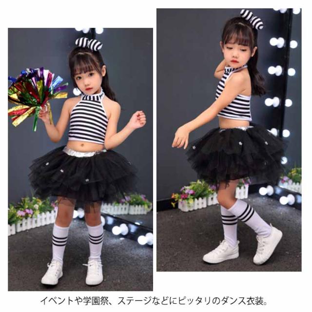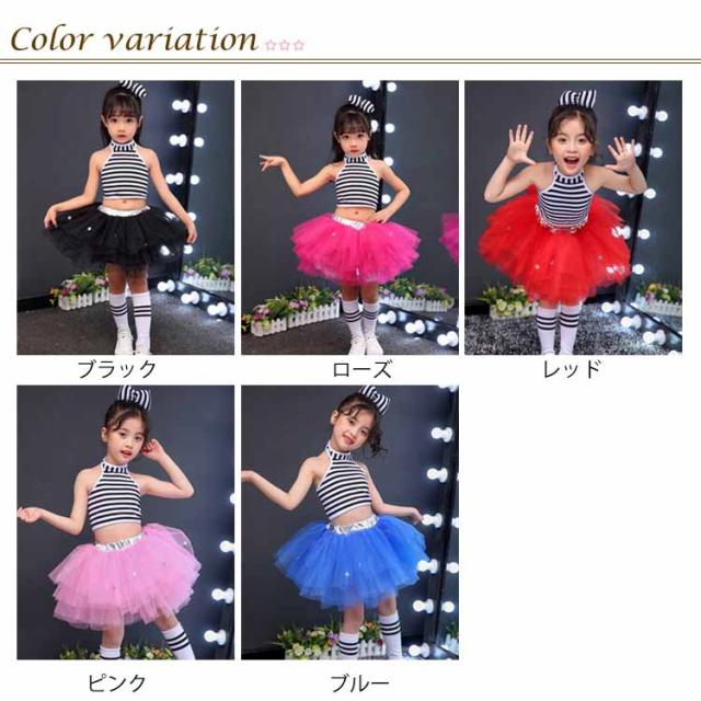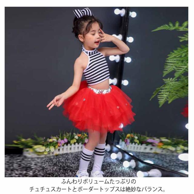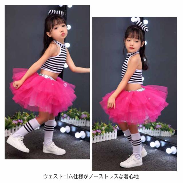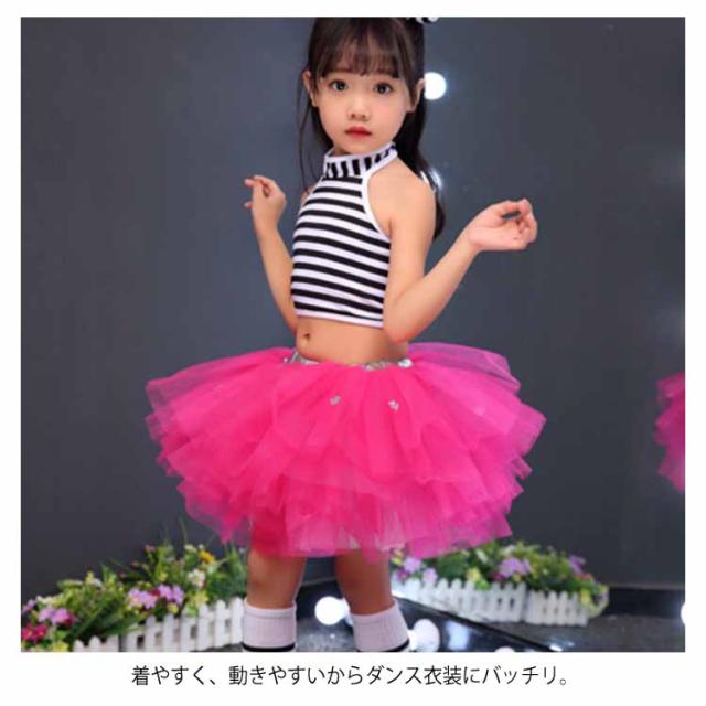 送料無料 全5色!ダンス衣装 セットアップ チュールスカート タンクトップ ボーダー 子供 キッズ 衣装 女の子 男の子 ダンスウェア 演出服 ステージ衣装 ヒップホップ チュチュ スカート ノースリーブ トップス 幼稚園 小学生 発表会 コスプレ