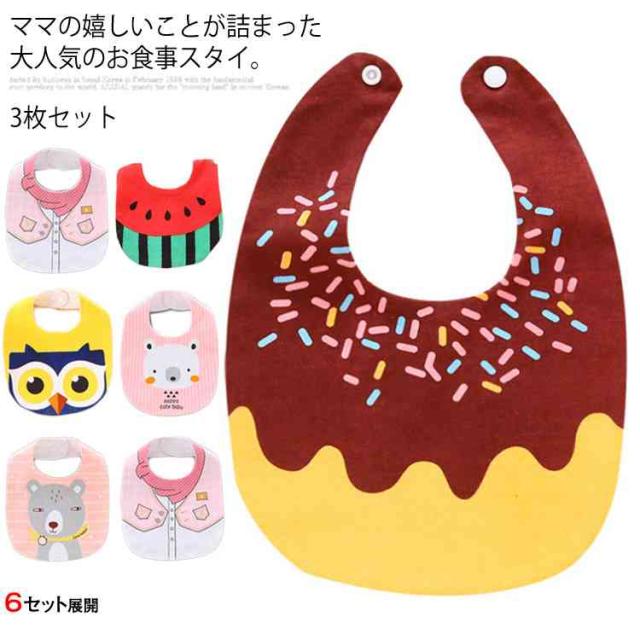 送料無料 選べる6色! 防水 お食事エプロン 3枚セット スタイ ベビースタイ よだれかけ ベビー コットン キッズ 赤ちゃん 新生児 U型スタイ コットンスタイ 防水 洗える 乳児 オシャレ お洒落 可愛い ファッション エプロン お食事 保育園 幼稚園 ご飯 女の子 男の子