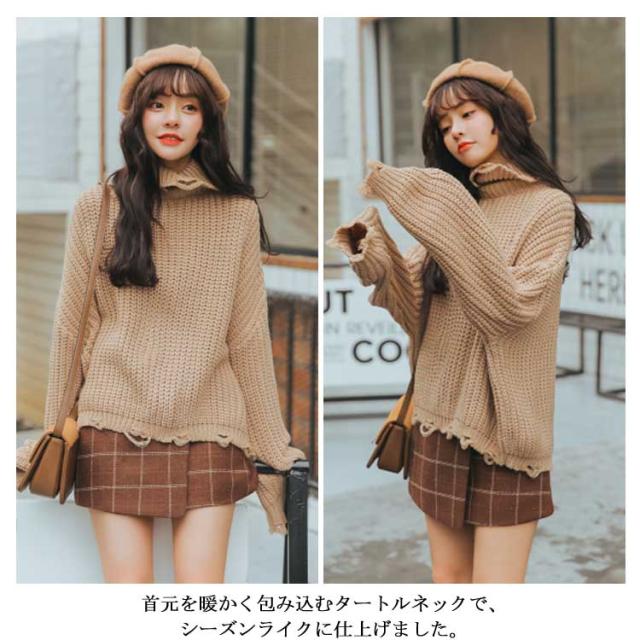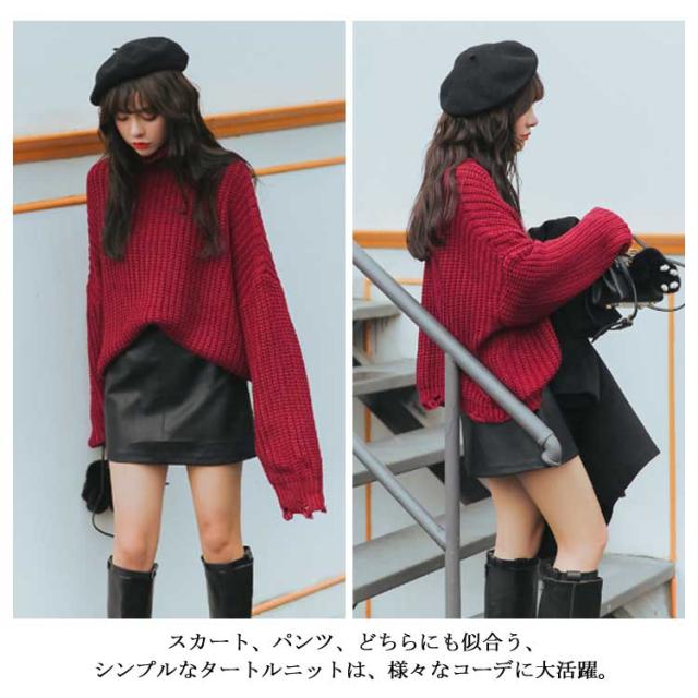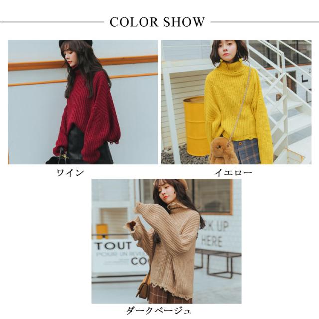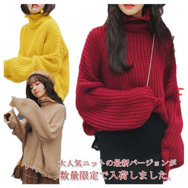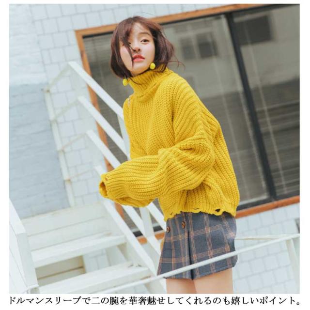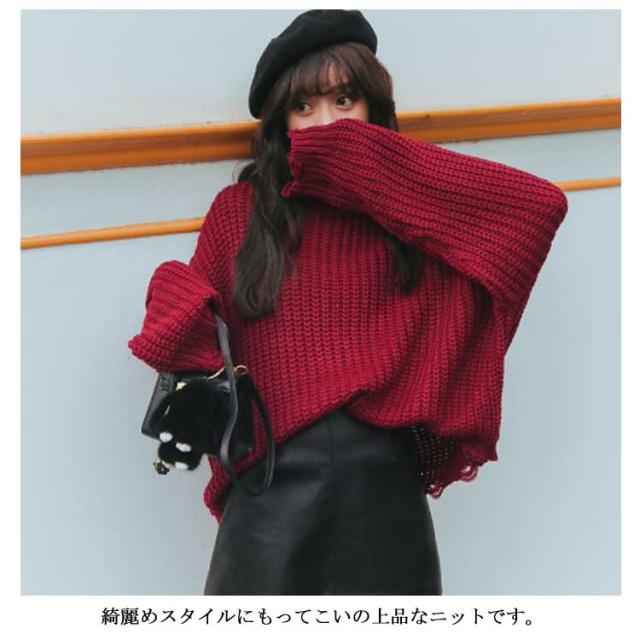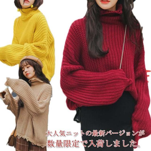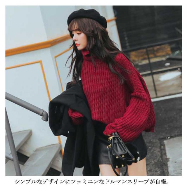 ゆったりシルエット タートルネック ニット ハイネック ニットセーター レディース ドルマンニット ドルマンスリーブ ニット セーター ドルマン ニット セーター チュニック 長袖 秋冬 厚手
