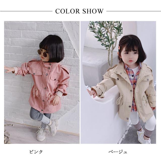 子供服 トレンチコート スプリングコート ミリタリージャケット 女の子 男の子 立て襟 キッズ 韓国スタイル ファッション 春秋用 アウター 上着 防風 保温 通園 通学 新作 80 90 100 110 120 130