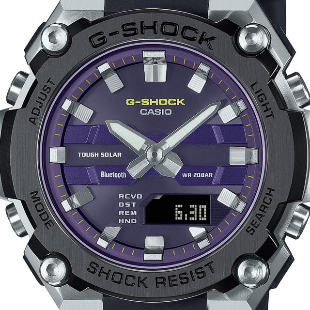 G-SHOCK G-STEEL 小型モデル GST-B600A-1A6JF メンズ 腕時計 ソーラー Bluetooth アナデジ 樹脂バンド パープル ブラック 反転液晶 国内正規品
