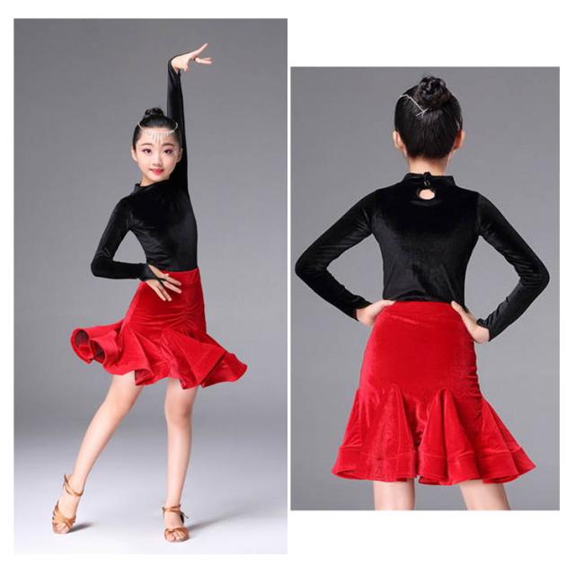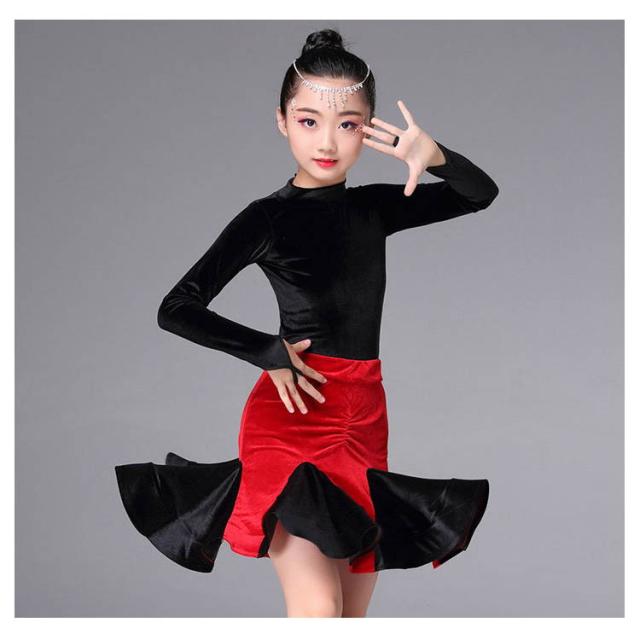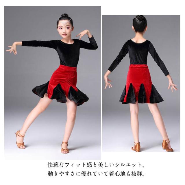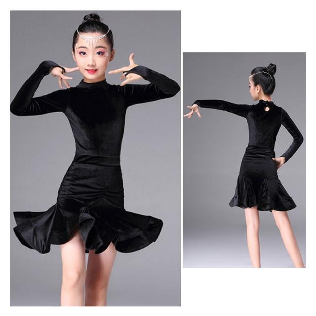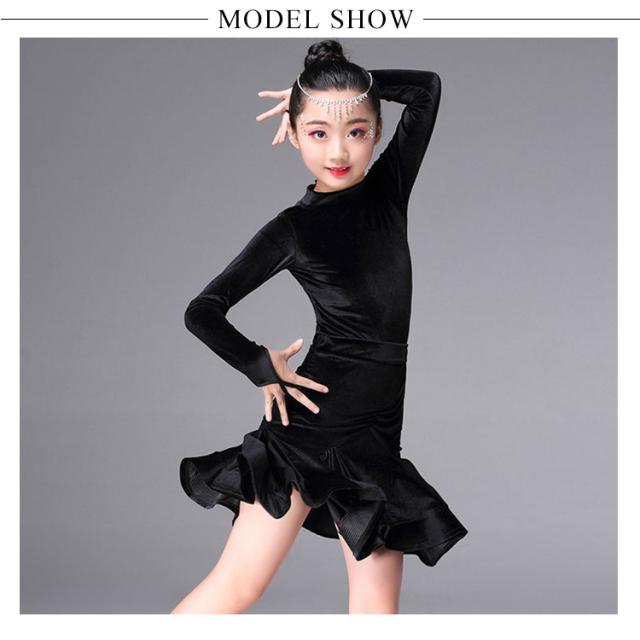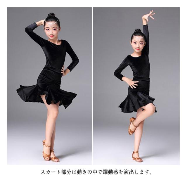 子供服 ラテンダンス クルーネック ベロアワンピース ちゃちゃちゃ ベロアダンス衣装 ダンスワンピース 女の子 子供ダンス服 長袖ラテンダンス 発表会用ドレス ワルツ ラテン系 ダンスドレス ラテンワンピース 社交ダンスドレス衣装 開場ドレス 新作 110 120 130 140 150 160