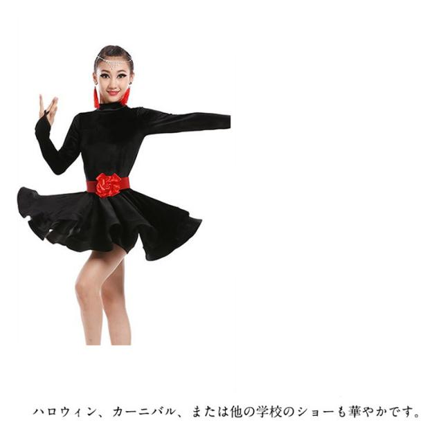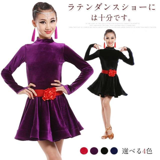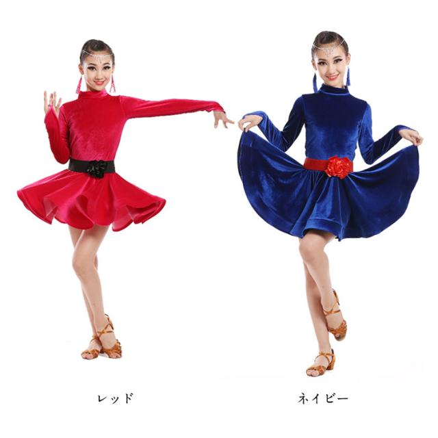子供服 ラテンダンス ハイネック ベロアワンピース ちゃちゃちゃ ベロアダンス衣装 ダンスワンピース 女の子 子供ダンス服 長袖ラテンダンス 発表会用ドレス ワルツ ラテン系 ダンスドレス ラテンワンピース 社交ダンスドレス衣装 開場ドレス 新作 110 120 130 140 150 160