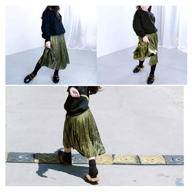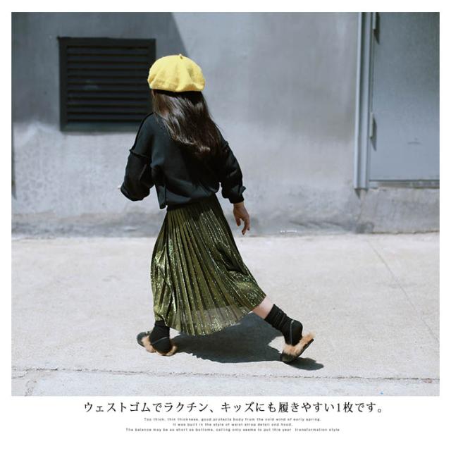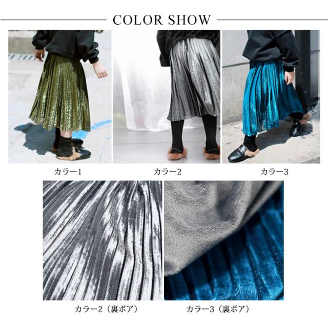子供服 プリーツスカート 裏起毛 ロングスカート フレアスカート 女の子 裏ボア ふわふわ もこもこ 暖か きらきら おしゃれ プリーツ ウェストゴム 厚手 可愛い 新作 80 90 100 110 120 130 140