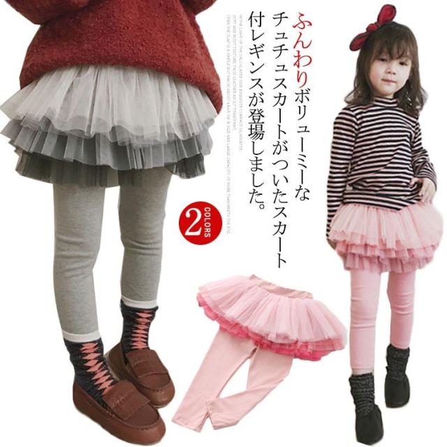 子供服 チュールスカッツ チュールスカート付 レギンス スカッツ 女の子 キッズ ウエストゴム ジュニア 子ども チュールスカート 子供用 レギンス付き3段チュチュスカート 可愛い 新作 90 100 110 120 130 140