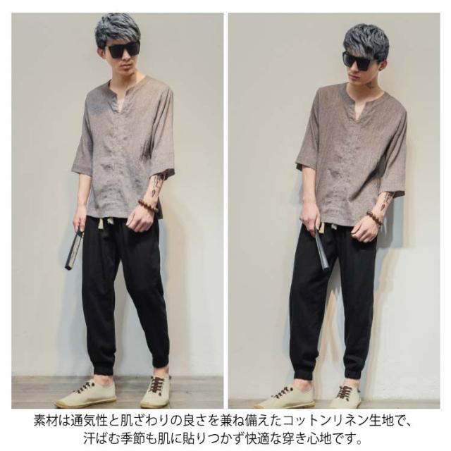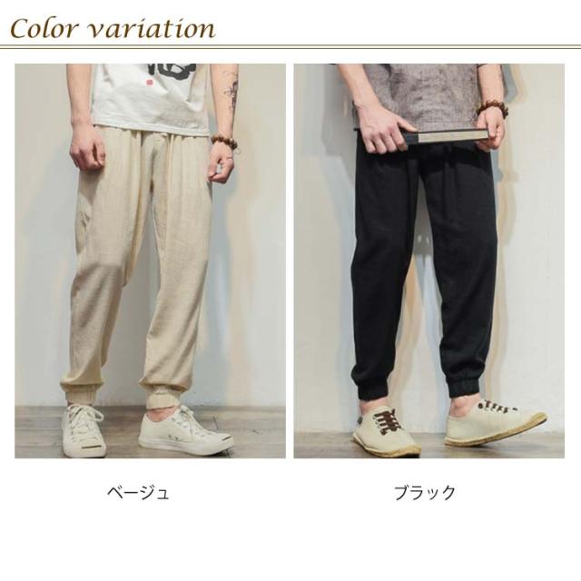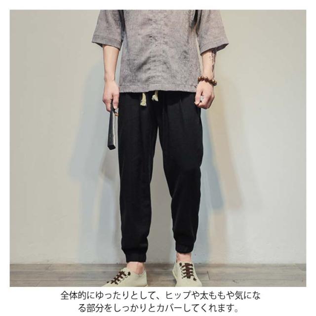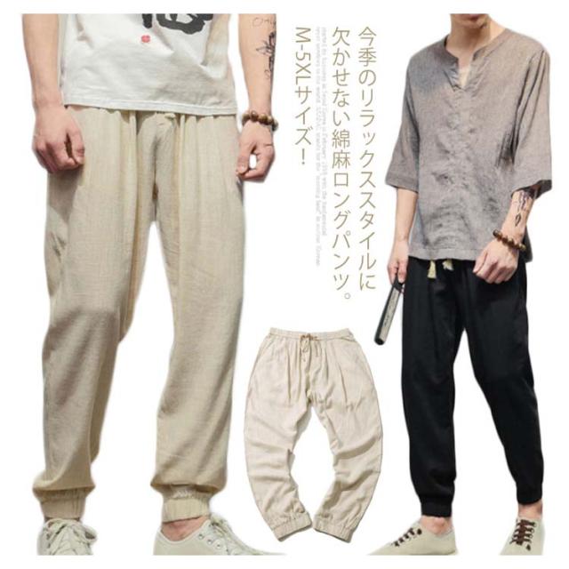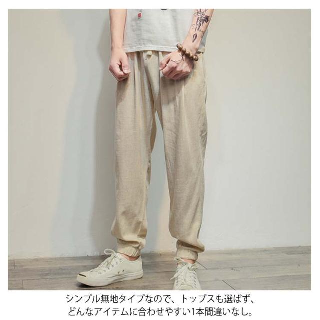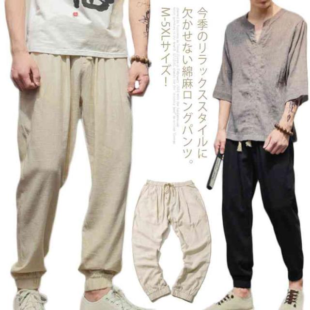 M-5XLサイズ!綿麻 ロングパンツ メンズ サルエルパンツ リネンパンツ ロング ジョガーパンツ サルエル パンツ 麻混 薄手 ウエストゴム 春 夏送料無料