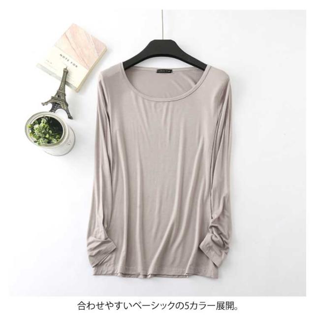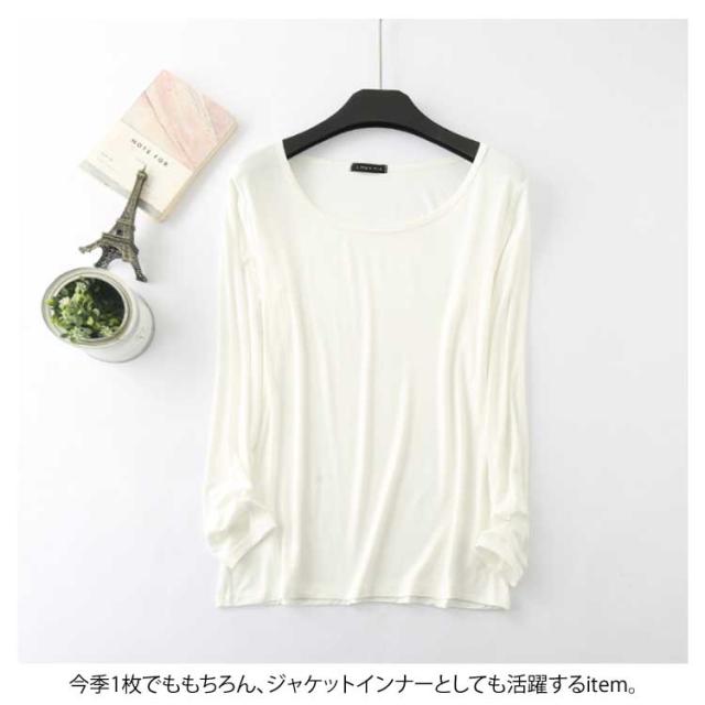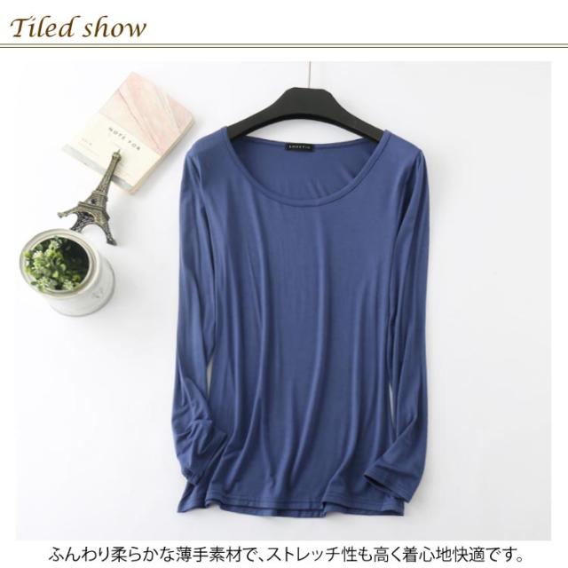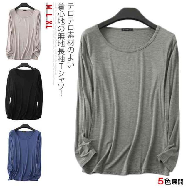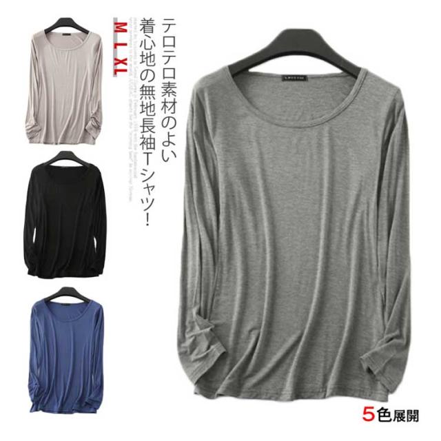 送料無料テロテロ素材のよい着心地!tシャツ レディース 長袖 長袖Tシャツ 長袖カットソー クルーネック 無地 Tシャツ ストレッチ トップス 春 夏 秋 薄手 おしゃれ 女性