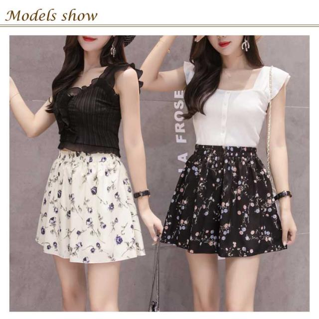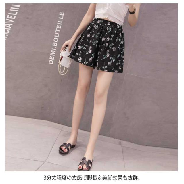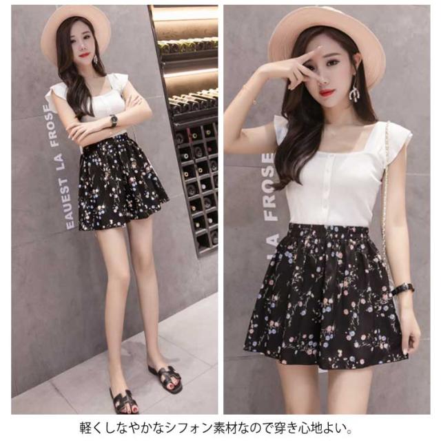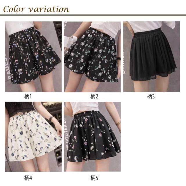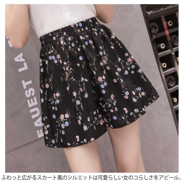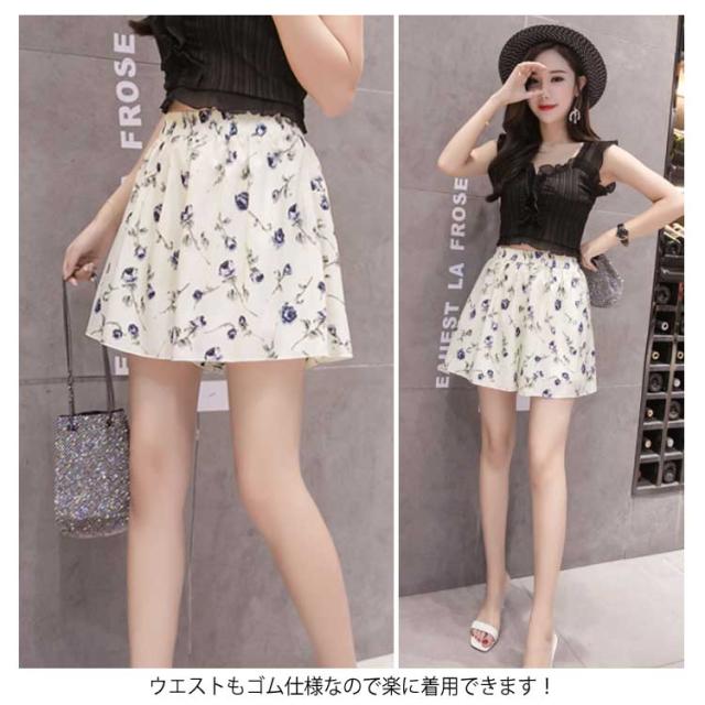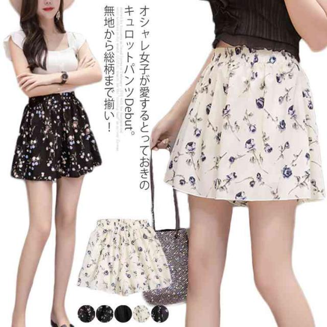 送料無料S-3XLサイズ!ショートパンツ レディース 夏 キュロット キュロットパンツ スカート風 ペチコート 裏地付き シンプル 無地 花柄 夏 美脚 ウエストゴム ふんわり 可愛い