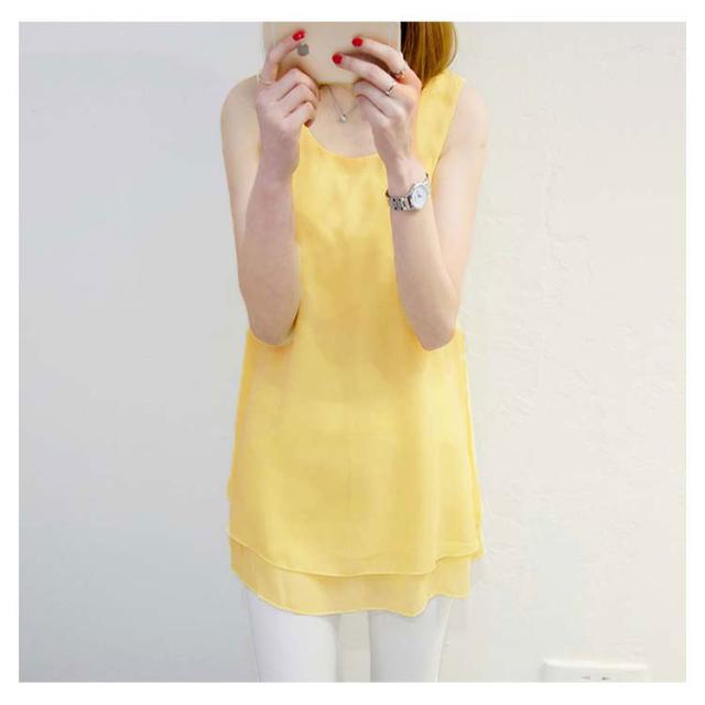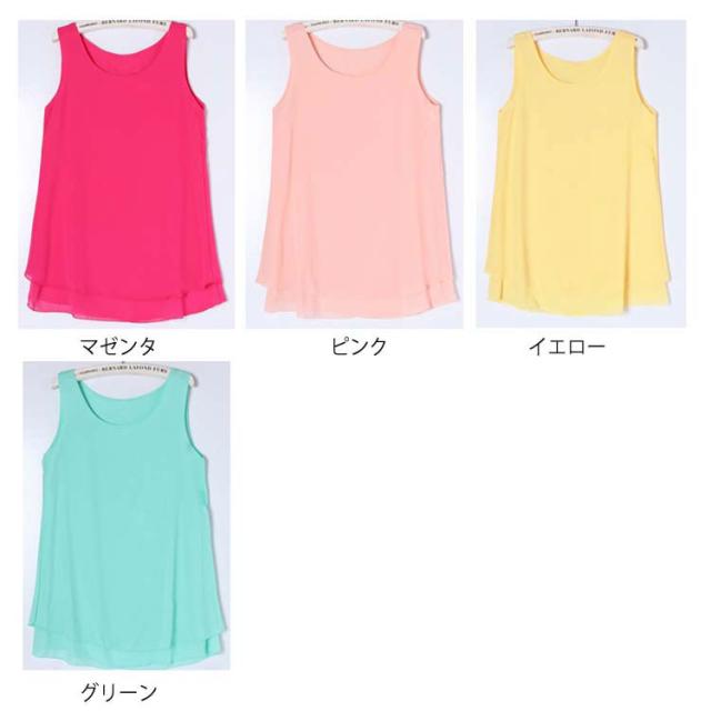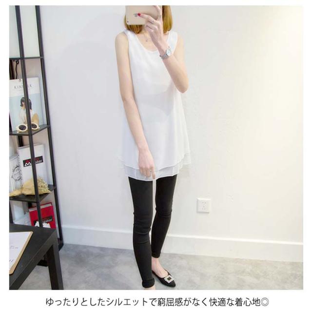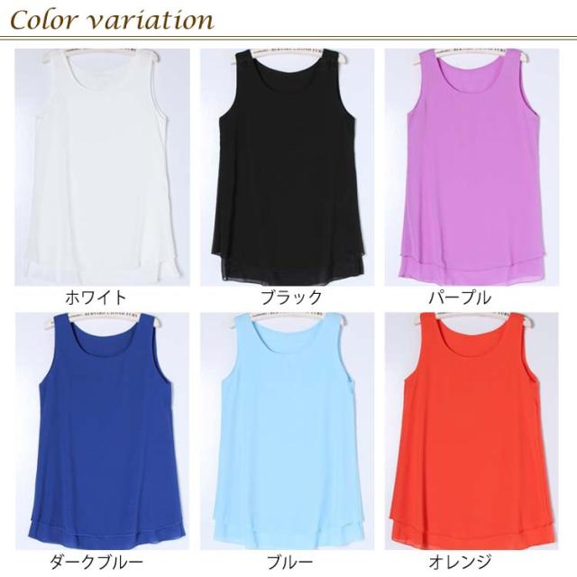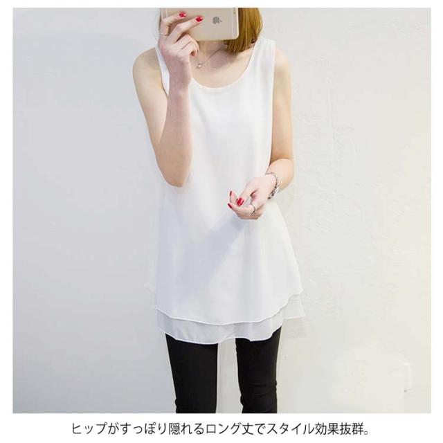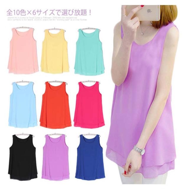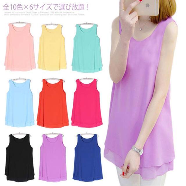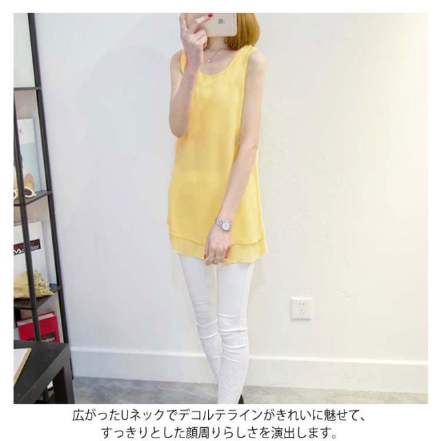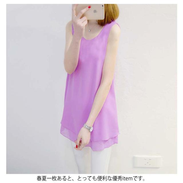 全10色×6サイズで選び放題!夏 ノースリーブトップス シフォントップス チュニック ロングタンクトップ シフォンタックトップ シフォン トップス Uネック 大きサイズ ノースリーブ Aライン シンプル