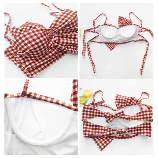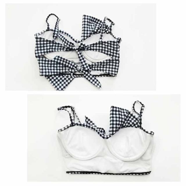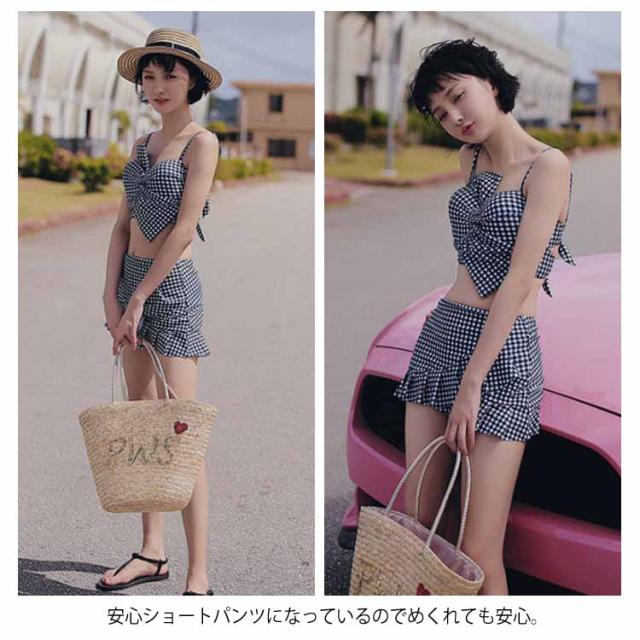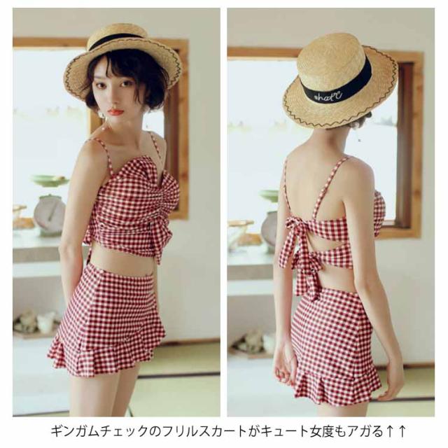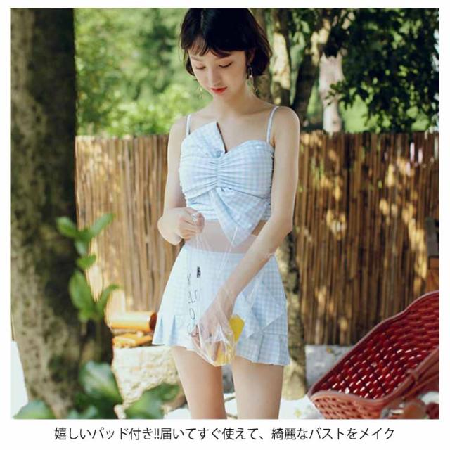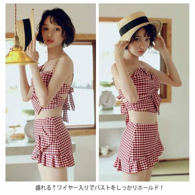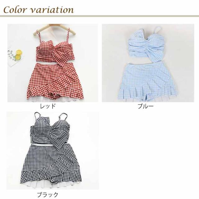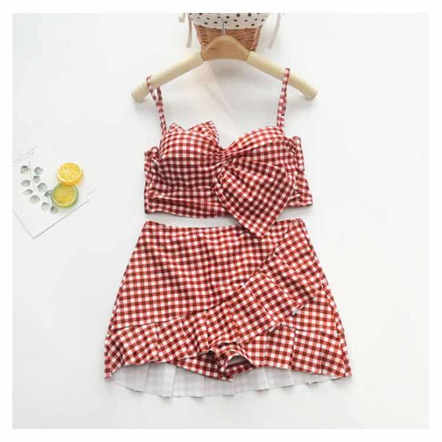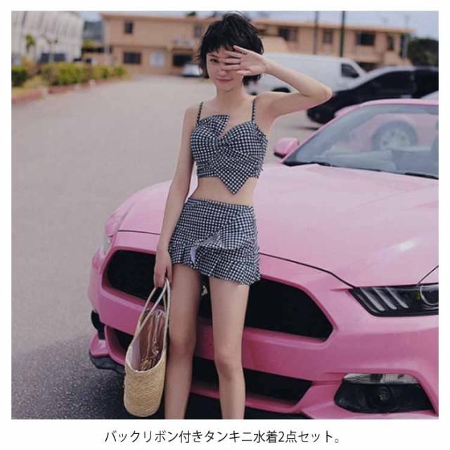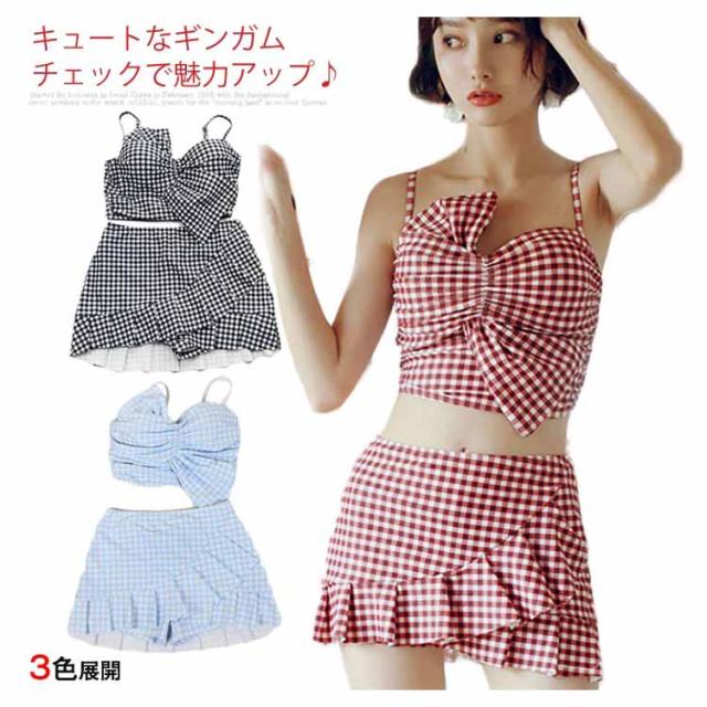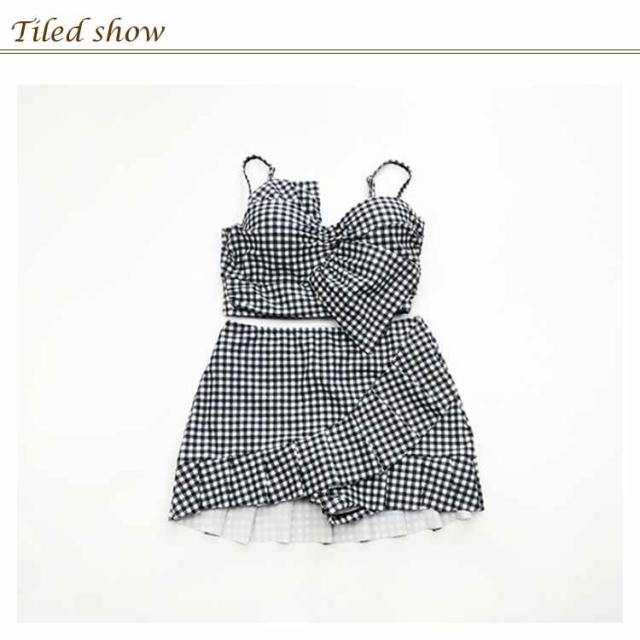 バック二つリボンで姿素敵。チェック柄水着 2点セット フリルスカート 水着 レディース 可愛い ビキニ水着 ビキニ スイムウエア セクシー 体型カバー 2019夏新作 リボン 20代 30代送料無料