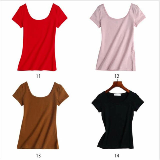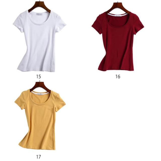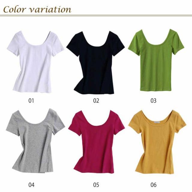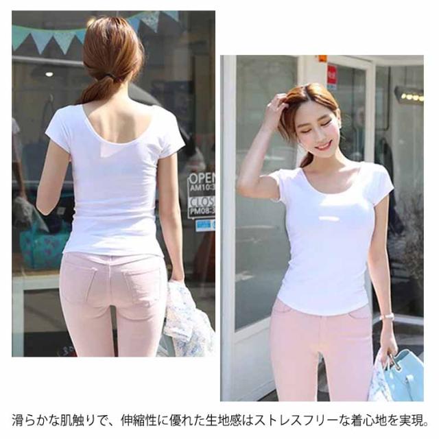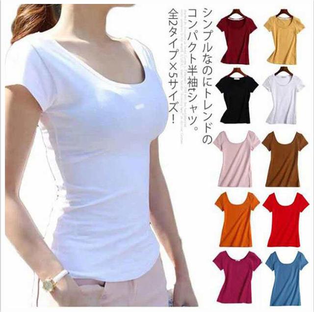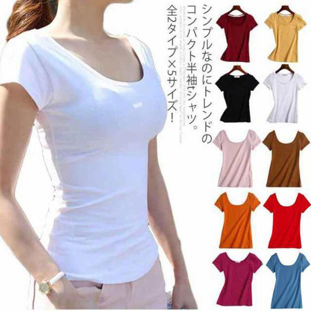 全2タイプ×5サイズ!UネックTシャツ Tシャツ レディース Uネック 半袖tシャツ 無地tシャツ セクシー tシャツ カットソー 無地 半袖 夏 フィット タイト