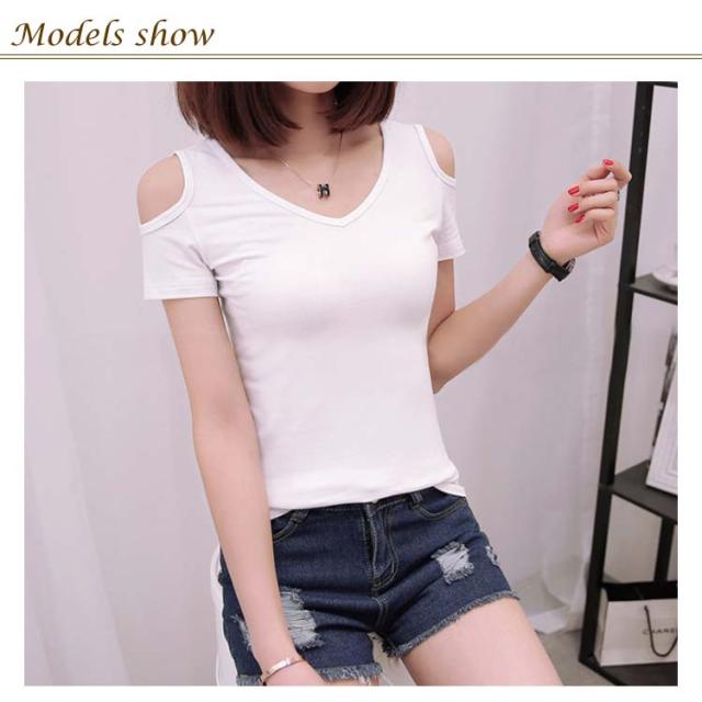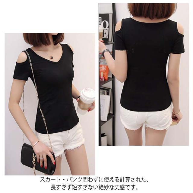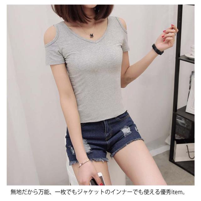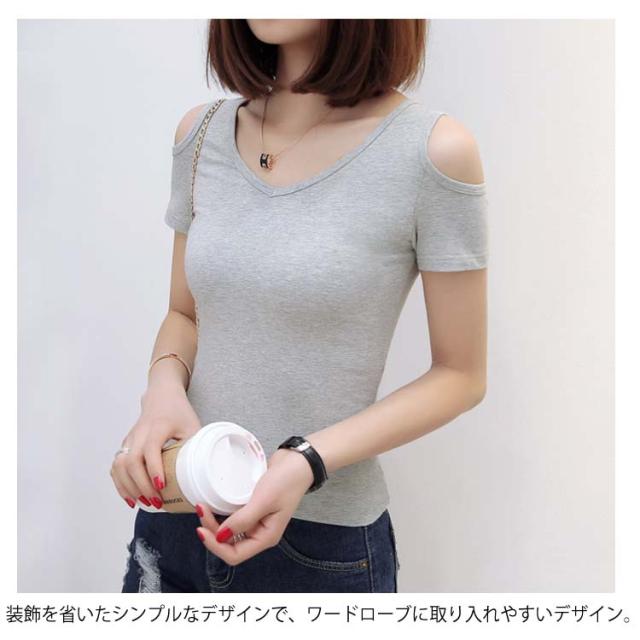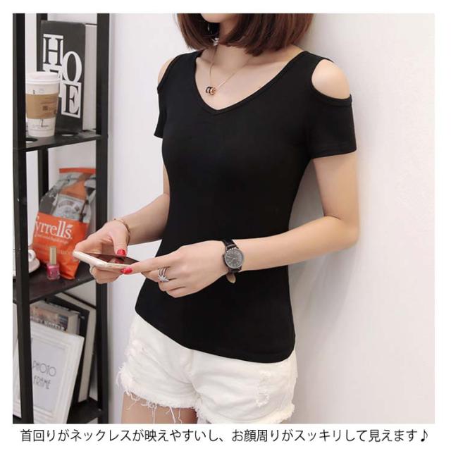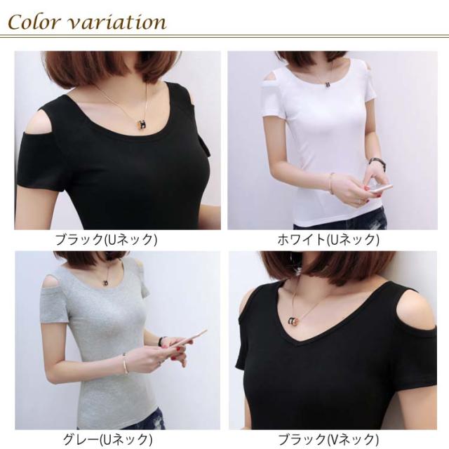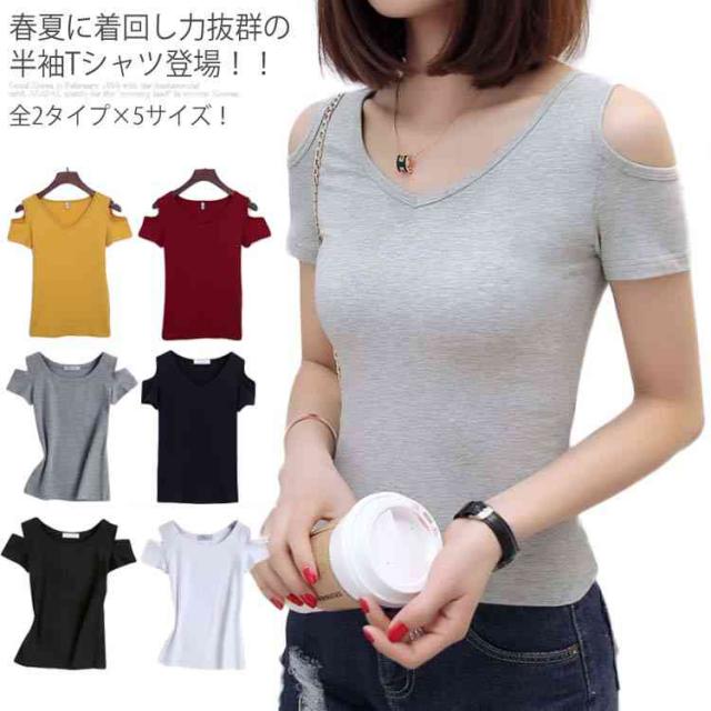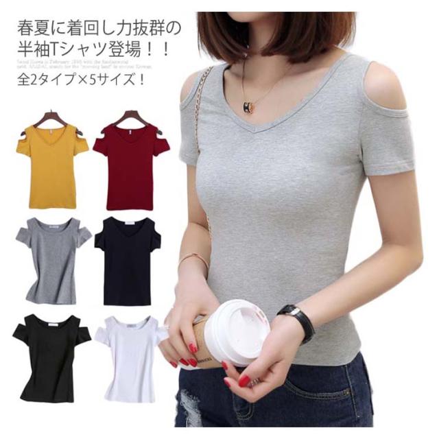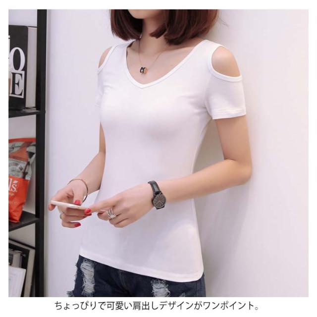 全2タイプ×5サイズ!肩出しTシャツ tシャツ レディース 肩出し Tシャツ カットソー 半袖 Vネック Uネック タイト トップス 無地 夏服 綿 おしゃれ 可愛い送料無料
