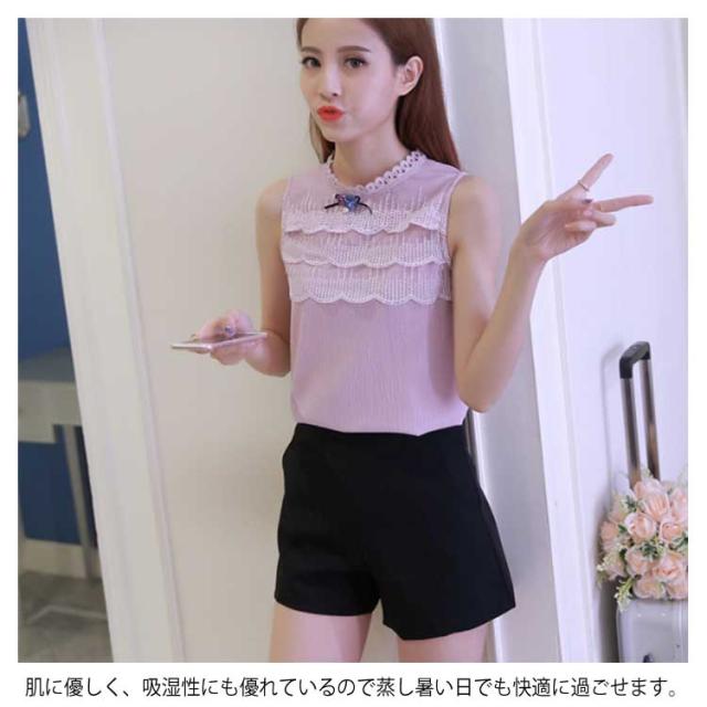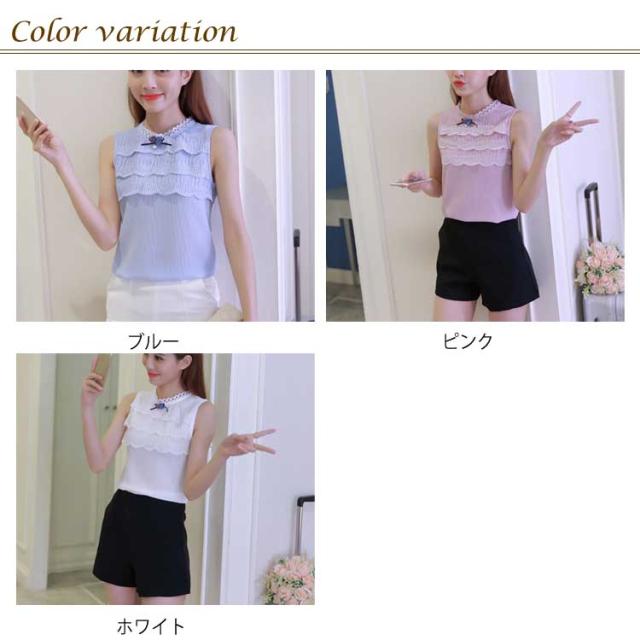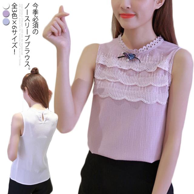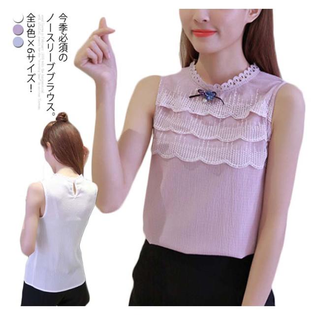 全3色×6サイズ!2019春夏新作 ノースリーブトップス レース刺繍トップス レディース トップス ブラウス ノースリーブ 3段レース レーストップス プルオーバー シンプル おしゃれ 薄手 夏服 夏物 大きサイズ送料無料