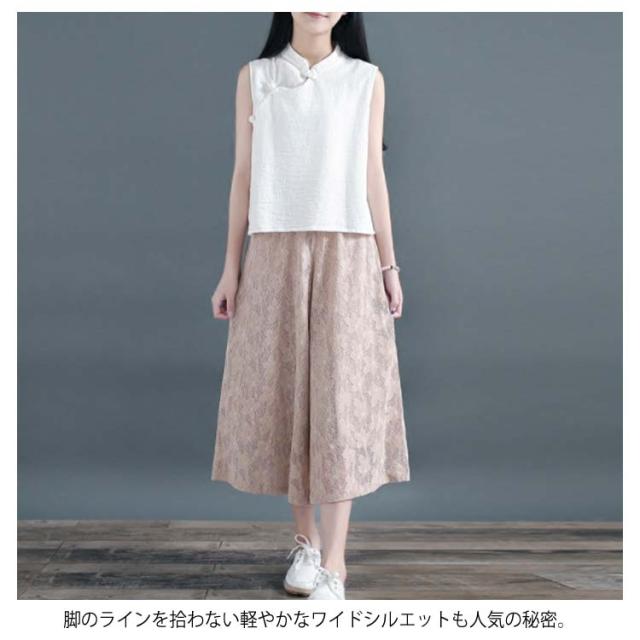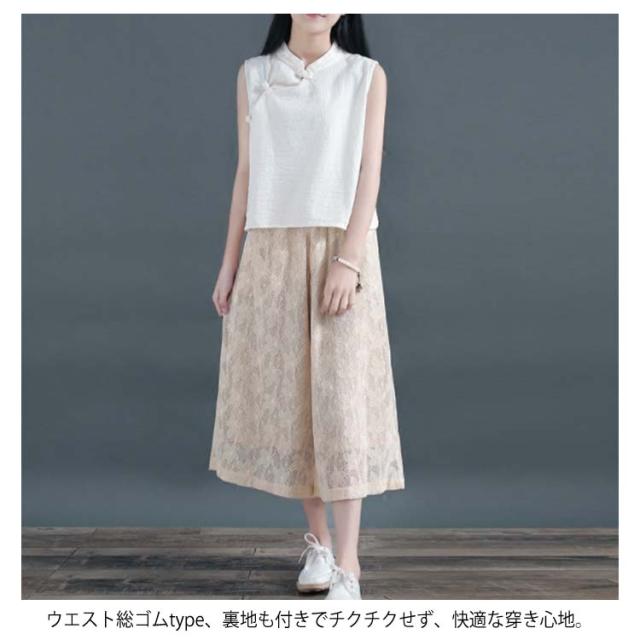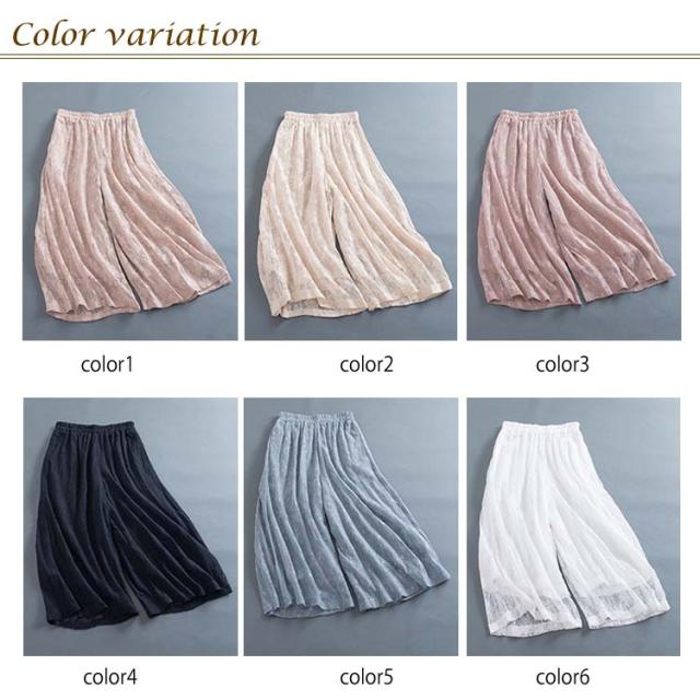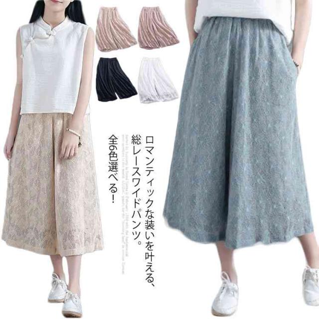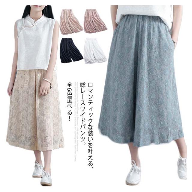全6color!レースワイドパンツ レディース ボトムス ワイドパンツ 総レース ワイド ガウチョパンツ クロップドパンツ ミモレ丈 ウエストゴム 春 夏 上品 キレイめ カジュアル送料無料