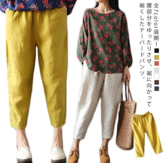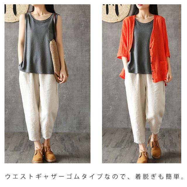 全7color展開!サルエルパンツ リネンパンツ レディース ボトムス リネン サルエル カジュアルパンツ 九分丈 アンクルパンツ 綿麻 ゆったり かわいい 春夏送料無料