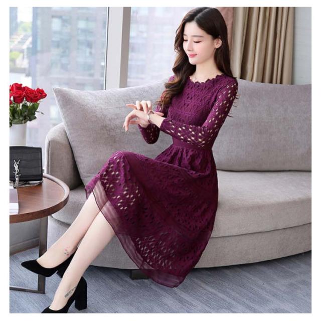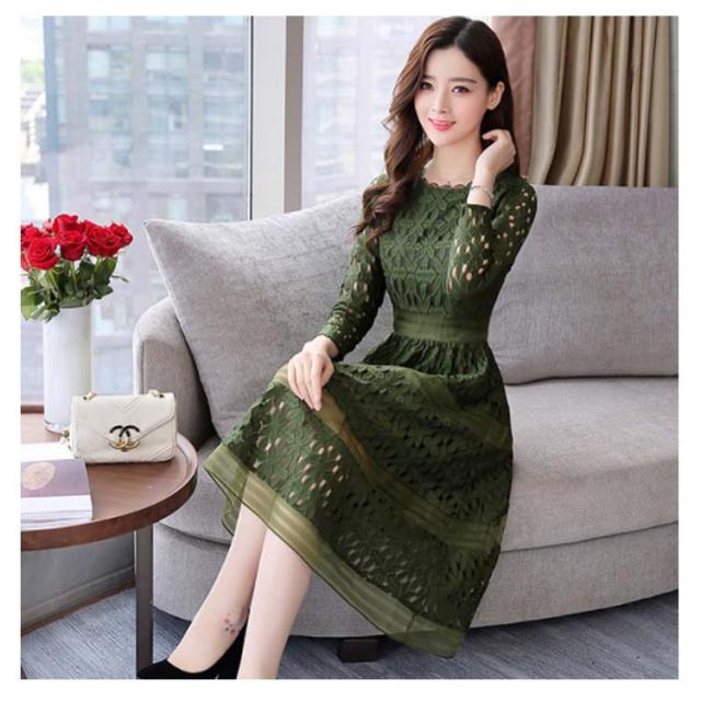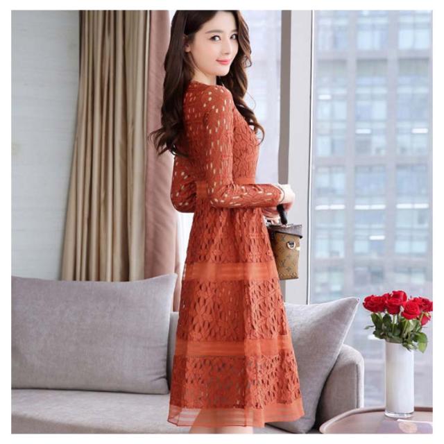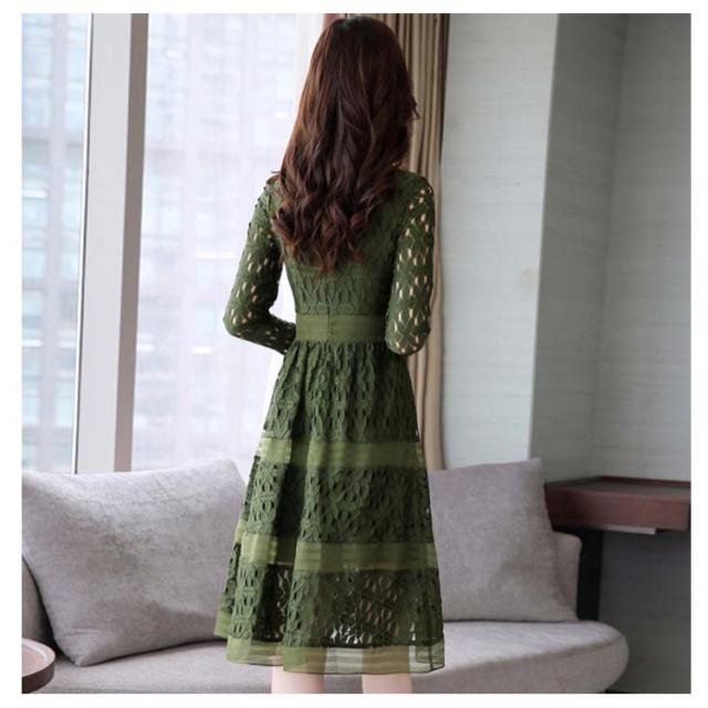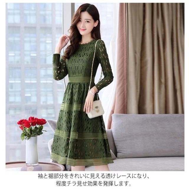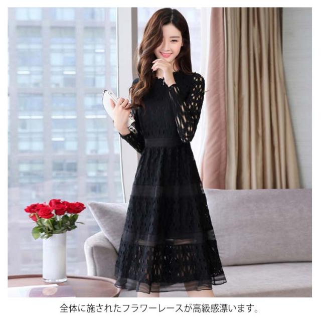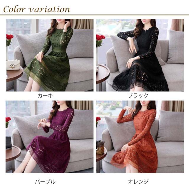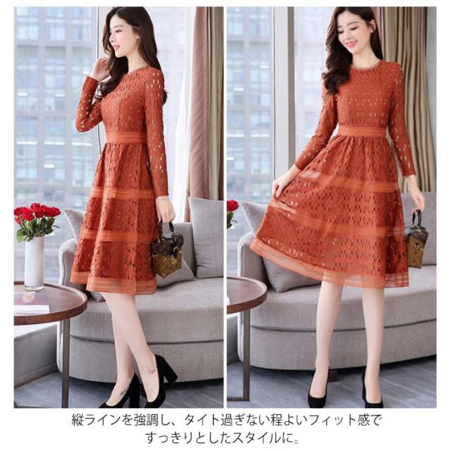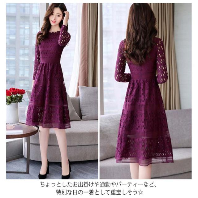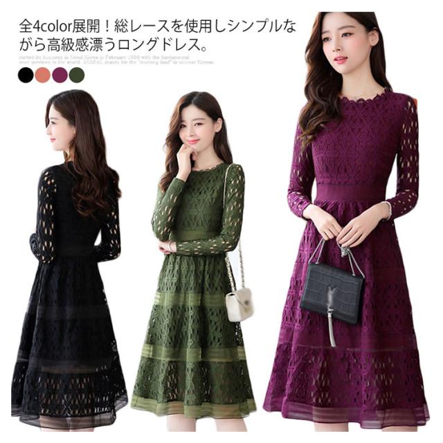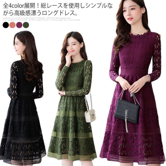 全4色×4サイズ!パーティードレス パーティー ドレス ワンピース レース 長袖ワンピース Aライン ロングワンピース ロング丈 ミディアム丈 春 夏