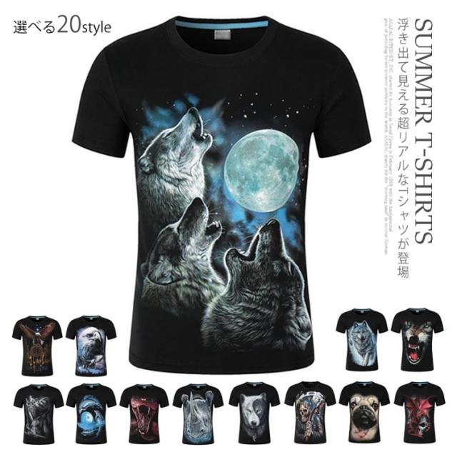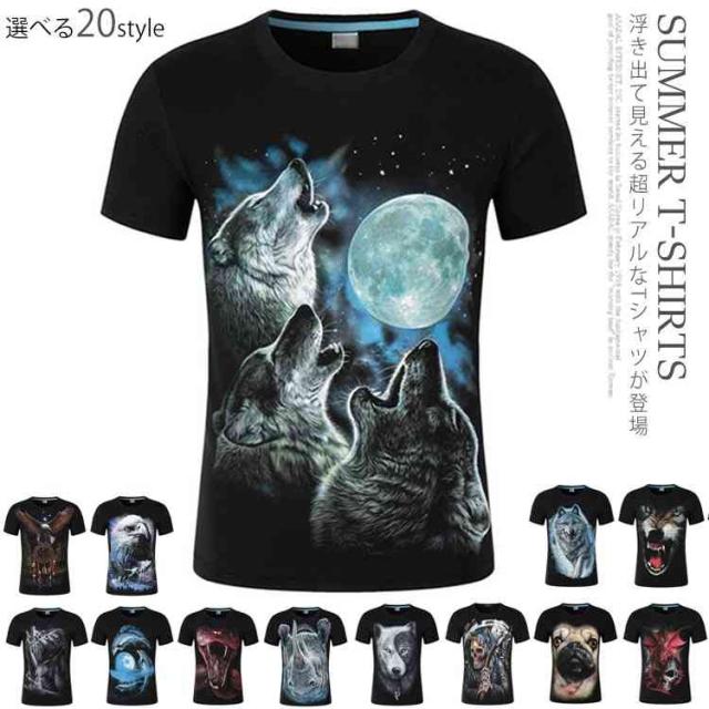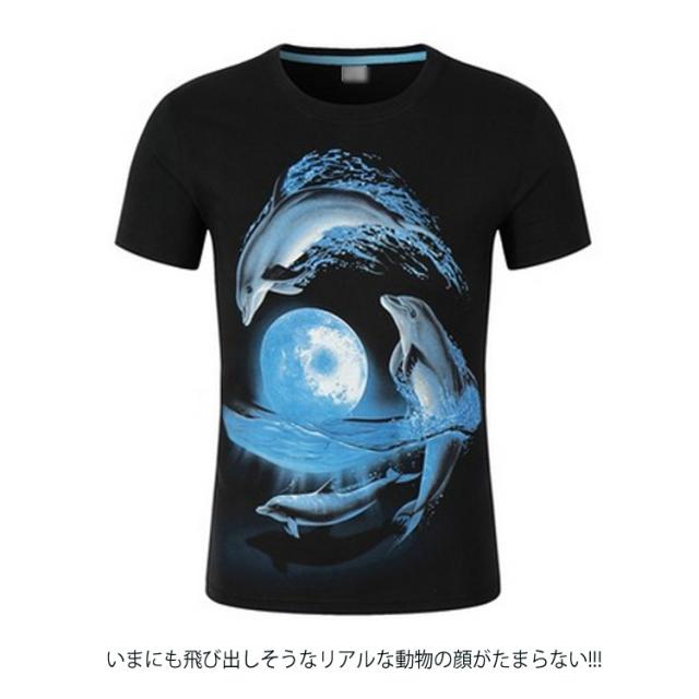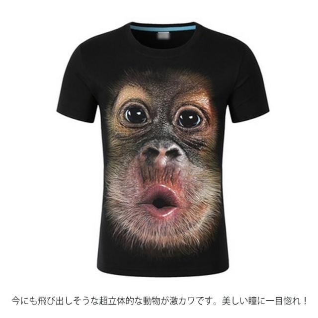 動物 3D Tシャツ 半袖Tシャツ アニマル 動物 リアル プリント tシャツ 男女兼用 おもしろ tシャツ カットソー メンズ ライオン 恐竜柄 獅子柄 ネコ柄 豚柄 虎 トラ柄 サル柄 豹柄 犬柄