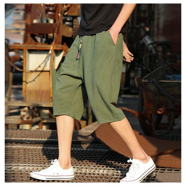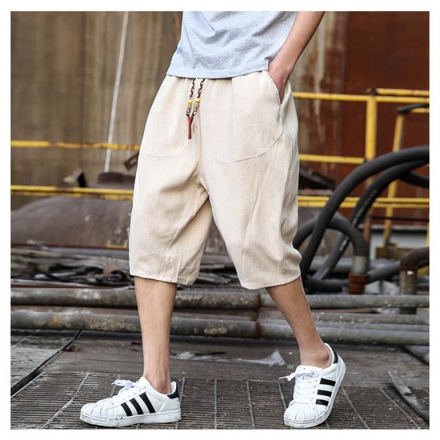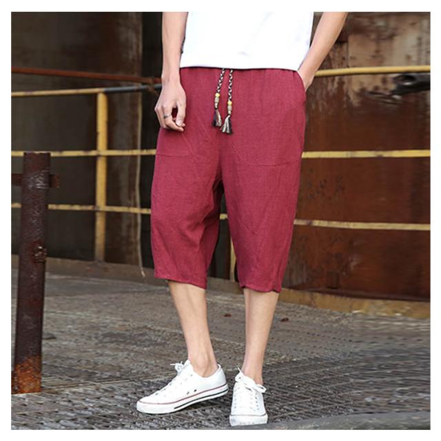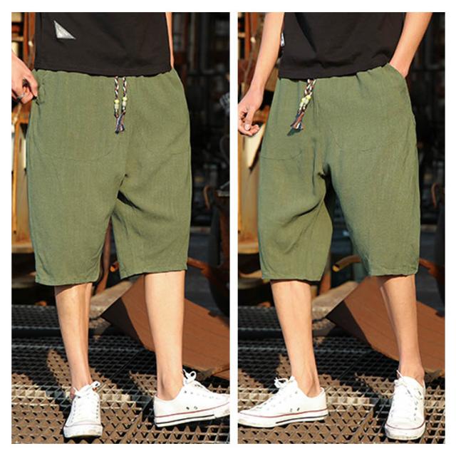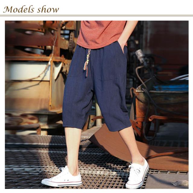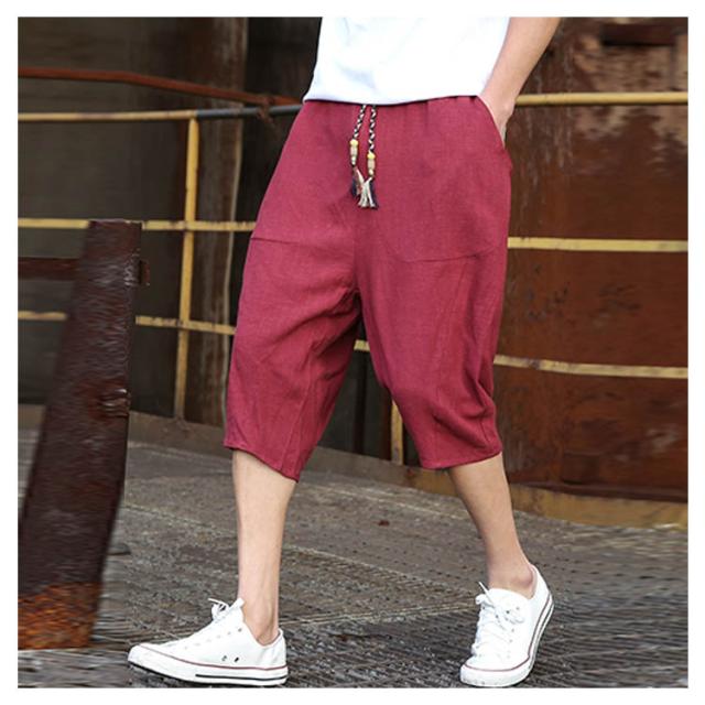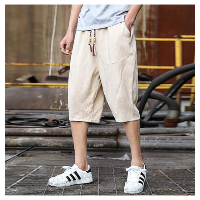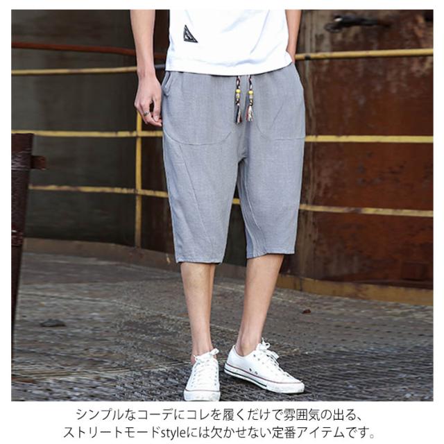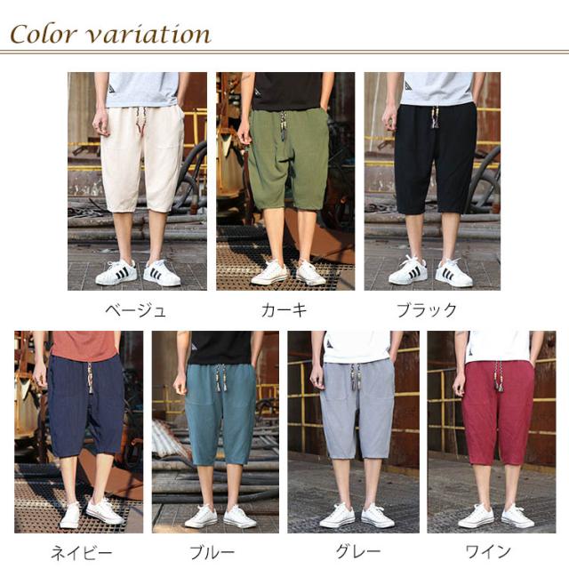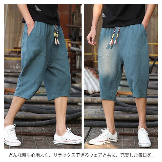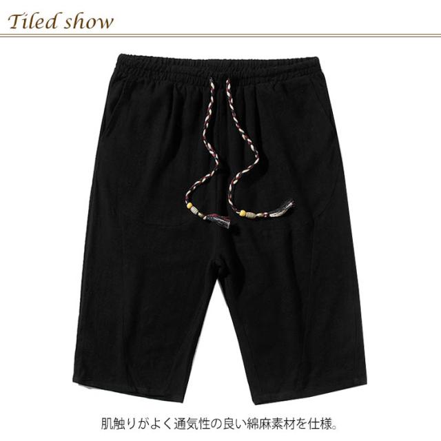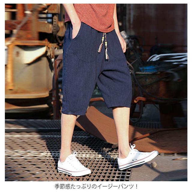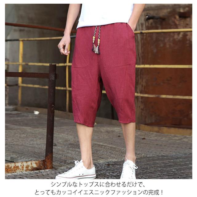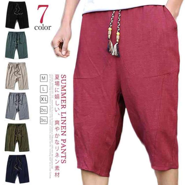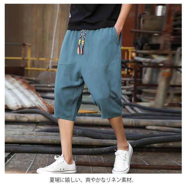 綿麻 パンツ リネンパンツ 7分丈 パンツ 綿麻 サルエルパンツ メンズ リネン ショートパンツ ハーフパンツ イージーパンツ チャイナ風 リラックス パンツ ワイドパンツ