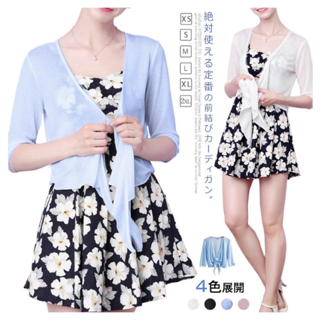 カーディガン 前結び トップス レディース 薄手 UV対策 紫外線対策 冷房対策 ショート丈 大きいサイズ シンプル カジュアル送料無料