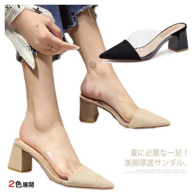 サンダル ヒール シンプル 厚底サンダル レディース 靴 春夏 シューズ おしゃれ 厚底 ハイヒール 太ヒール 疲れにくい 痛くない送料無料