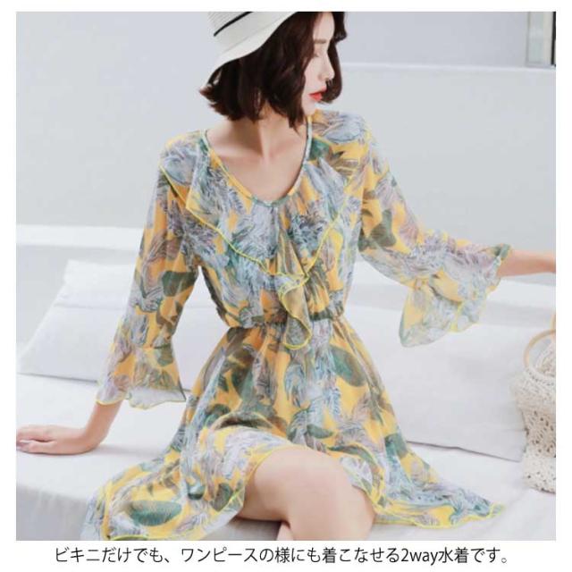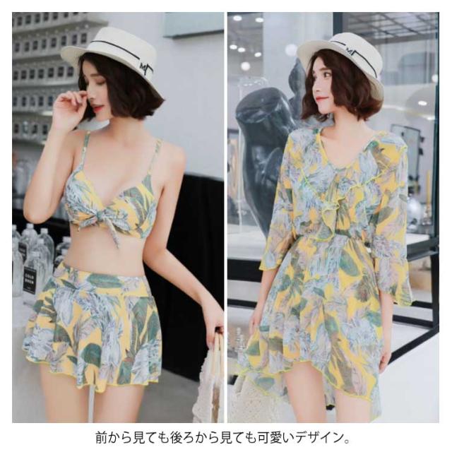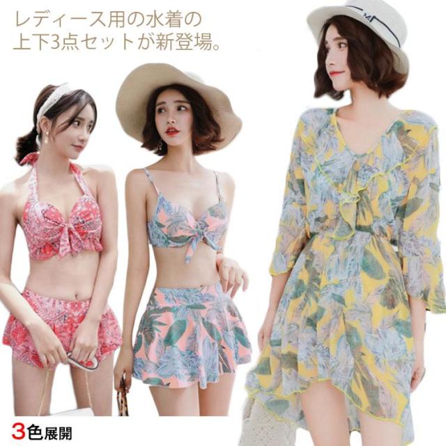 水着 レディース タンキニ ビキニ スカート ワンピース 3点セット ボタニカル 体型カバー 大きいサイズ 大人可愛い パッド付 大人女子 セクシー送料無料