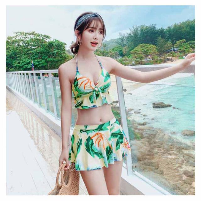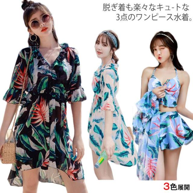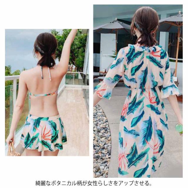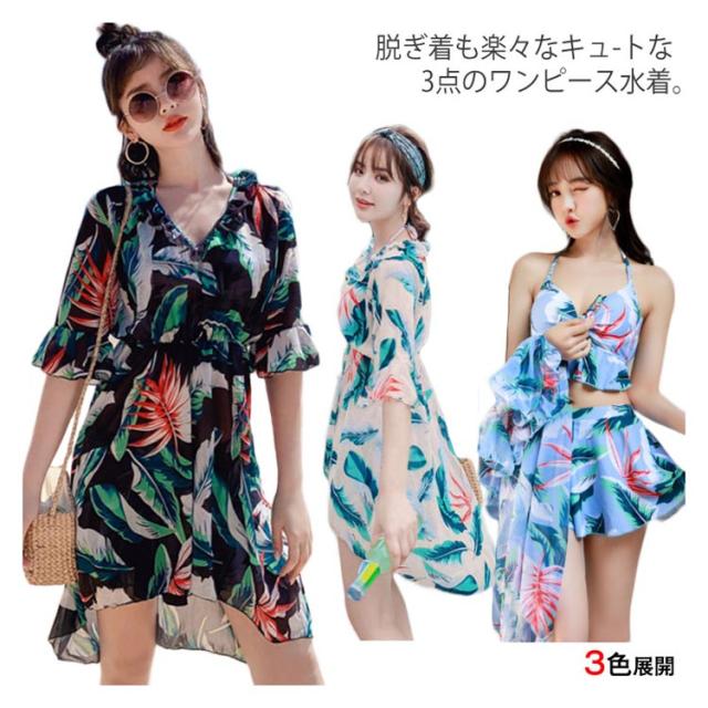 水着 レディース タンキニ ビキニ スカート ワンピース 3点セット ボタニカル 体型カバー 大きいサイズ 大人可愛い パッド付 大人女子 セクシー送料無料
