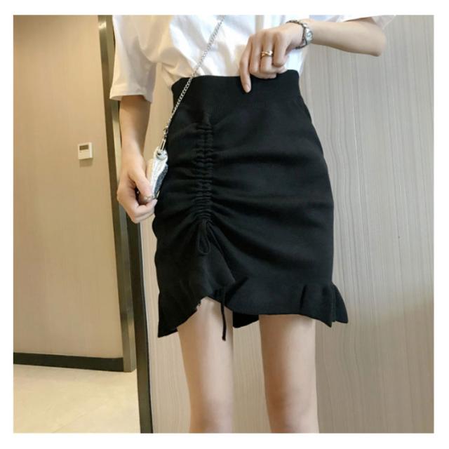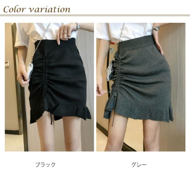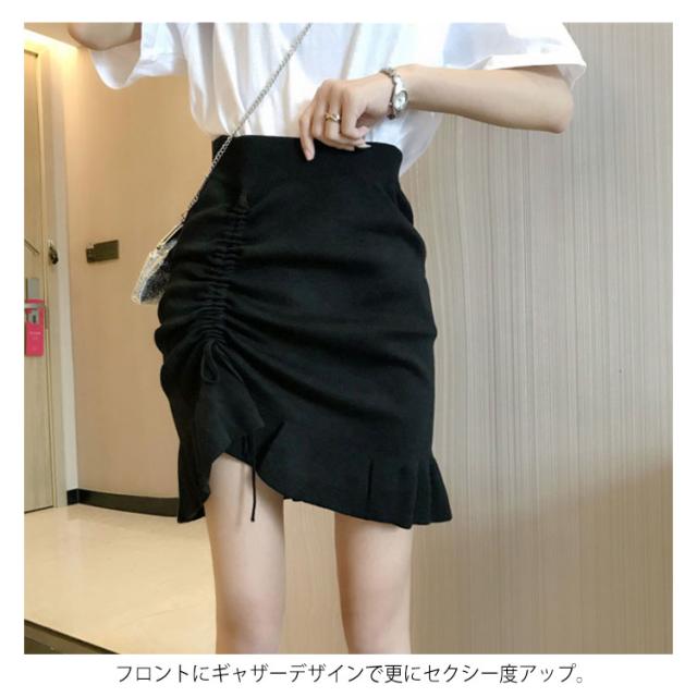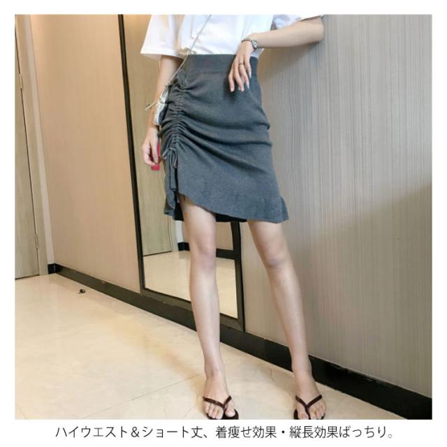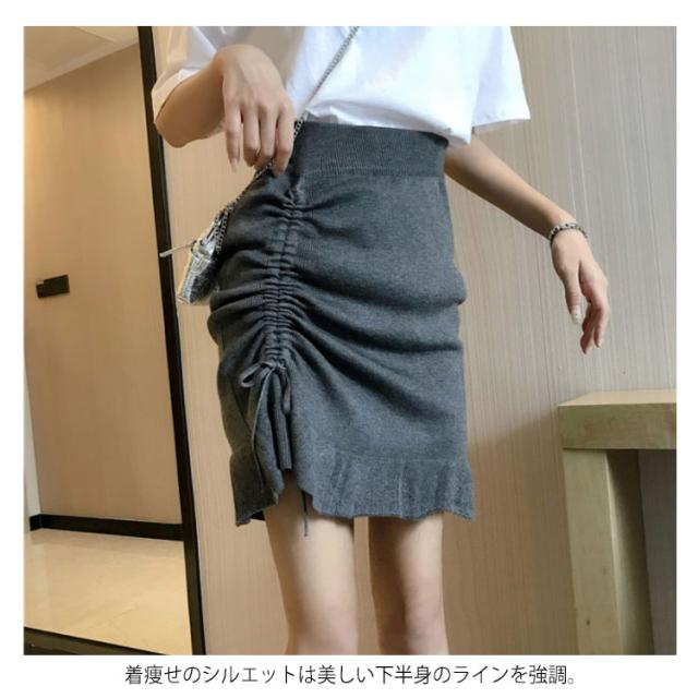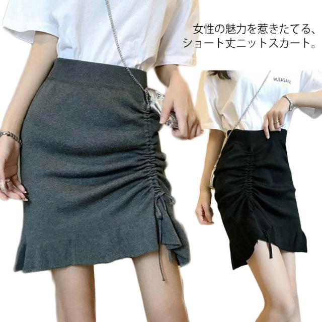 スカート ニットスカート ギャザー ショートスカート ハイウエスト フレアスカート ショート丈 ボトムス レディース 秋物 体型カバー お洒落 無地 ウエストゴム 着痩せ送料無料